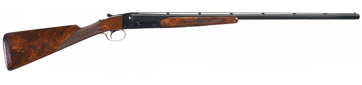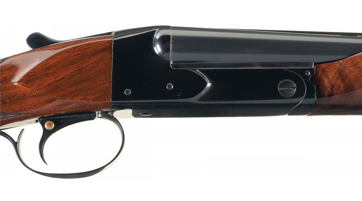 This is a post-WWII production example with a vent rib and straight grip stock. Dual bead sights, chokes marked modified and improved modified (gauge modified/modified), ejectors and chambers marked 2 3/4 inches (gauge at 2 5/8 inch). Tang mounted safety and trigger mounted barrel selector. The left side of the barrel has the Winchester legend and the water table has the patent marking. Nicely figured and multi-point checkered beavertail forearm and buttstock with a solid recoil pad. Length of pull is 14 inches. Comes with a Winchester takedown case and case key.