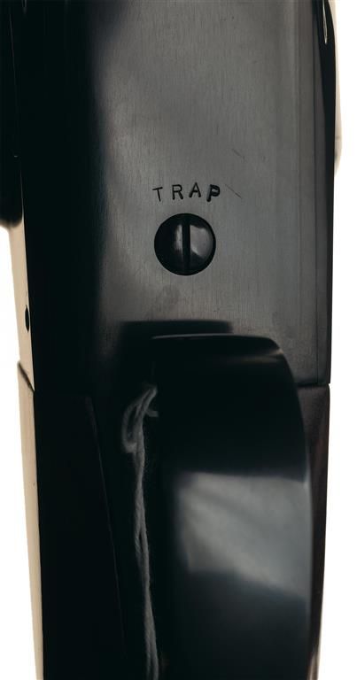 This example was manufactured circa 1956. The barrels have two steel bead sights on the matte vent rib, are choked full/full and have 2 3/4 inch chambers. The left barrel and the water table have the last style markings used until 1959. The trigger plate is marked "TRAP" above the trigger plate screw. Mounted on a multi-point checkered beavertail walnut forearm and pistol grip stock with a horn grip cap and a black Winchester recoil pad. Length of pull is 14 inches.