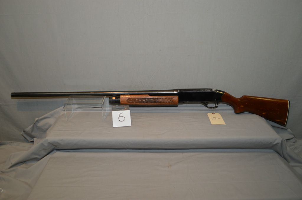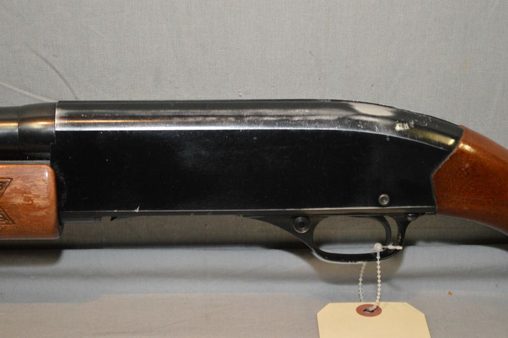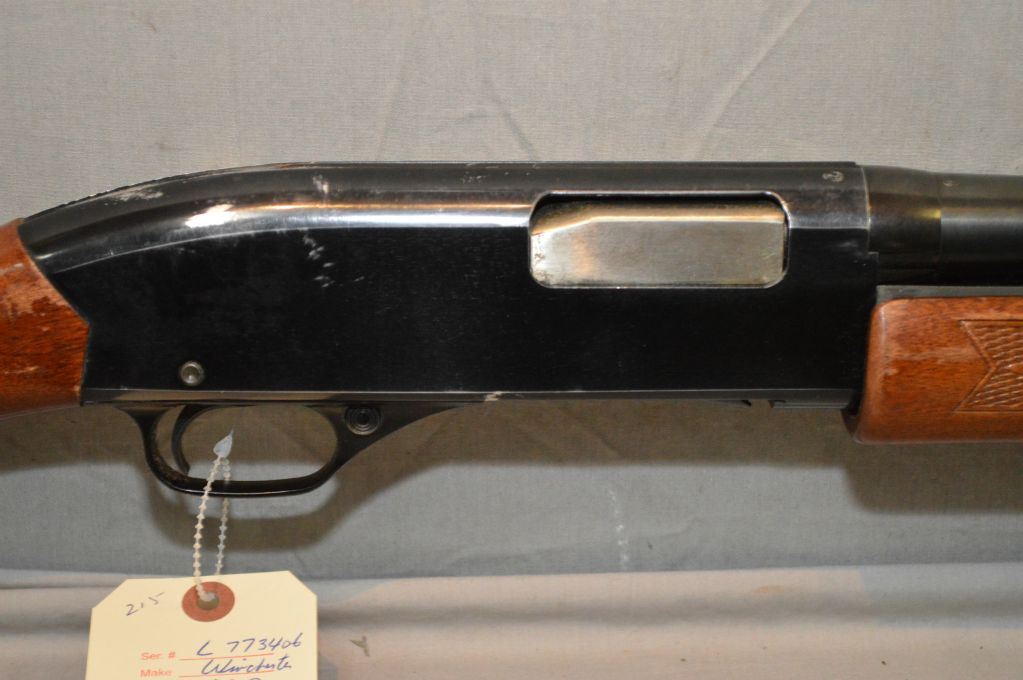 Winchester Model 2200 . 12 Ga 2 3/4" Pump Action Shotgun w/ 30" bbl [ blue finish starting to show some wear in carry areas, pistol grip stock w/pressed checkered forend, Winchester butt plate, some marks & flaking to varnish c/w two tone vinyl case ] Ser # L773406
