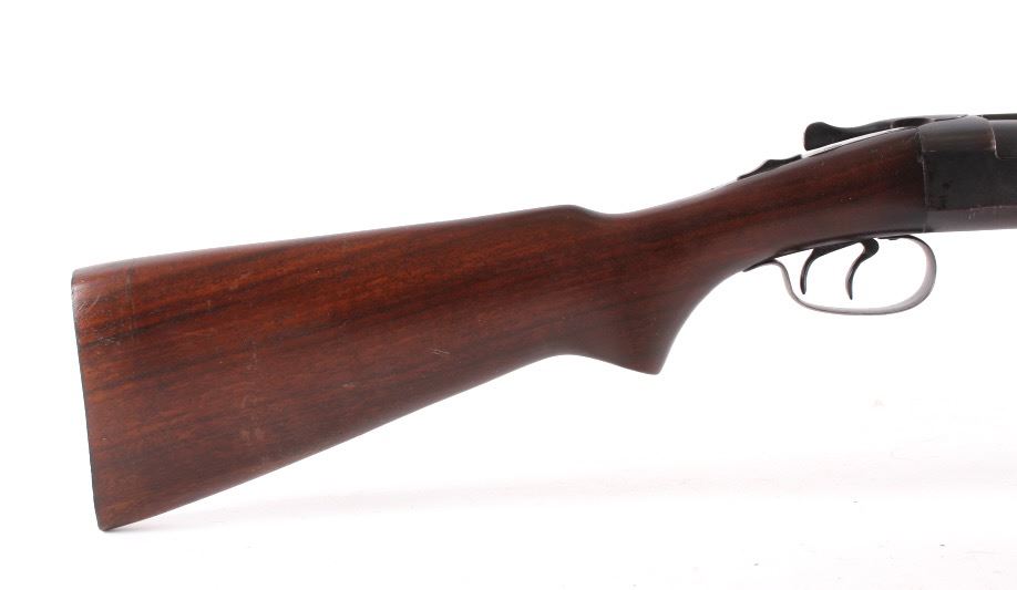 For your consideration is a Winchester Model 24 side by side 12 gauge shotgun. This quality Winchester firearm features a 30" fully ribbed blue'd round barrel. The shotgun is chambered in 12 Gauge 2 3/4 shells and has a modified and full barrel. The left barrel is marked "Made in New Haven, Conn U.S. of America - Winchester Trade Mark - Model 24 - 12 GA - 2 3/4 Cham." The receiver is blue'd and marked with the serial number on the bottom. The fore grip and stock are constructed of straight grain walnut. The butt stock is missing but otherwise the shotgun is in good condition for its age. This firearm was manufactured in 1949. Serial Number: 75101. This firearm qualifies as a Curio & Relic Long Gun, and requires FFL Transfer or NICS Background Check.