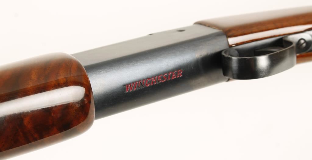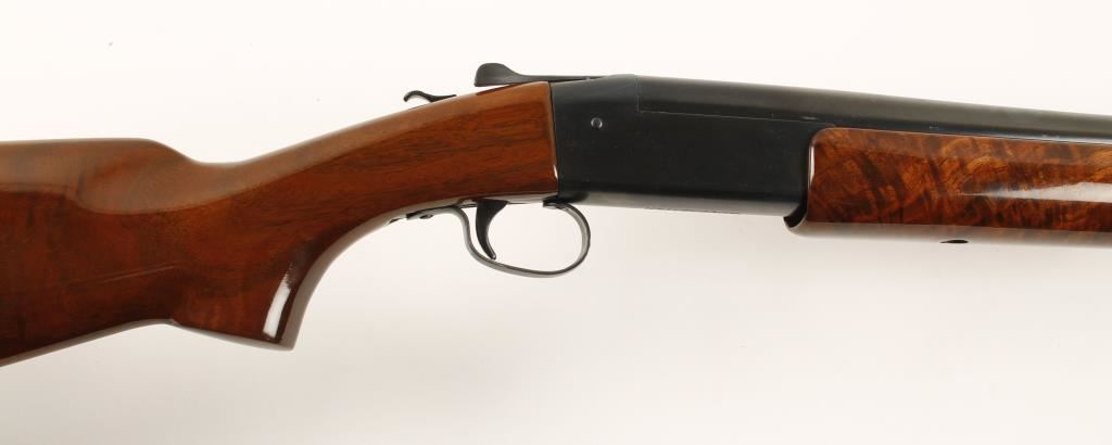 Beautifully refinished single shot exposed hammer shotgun chambered for 2 3/4" 12 gauge shells. Features a 30" blued barrel, elongated bead front sight, blued receiver, red "Winchester" lettering, high gloss finished walnut stock and rubber recoil pad. Bore is excellent. Condition is very good as refinished with a large scratch in stock. ***Modern Firearm***