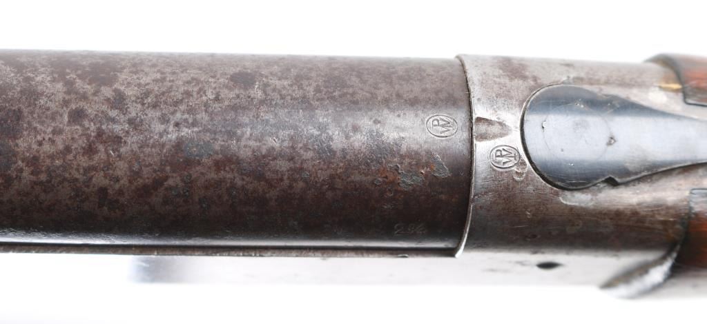 FAIR: Some major parts replaced; minor replacement parts may be required; metal rusted, may be lightly pitted all over, vigorously cleaned or re-blued; rounded edges of metal and wood; principal lettering, numerals and design on metal partly obliterated; wood scratched, bruised, cracked or repaired where broken; in fair working order or can be easily repaired and placed in working order.