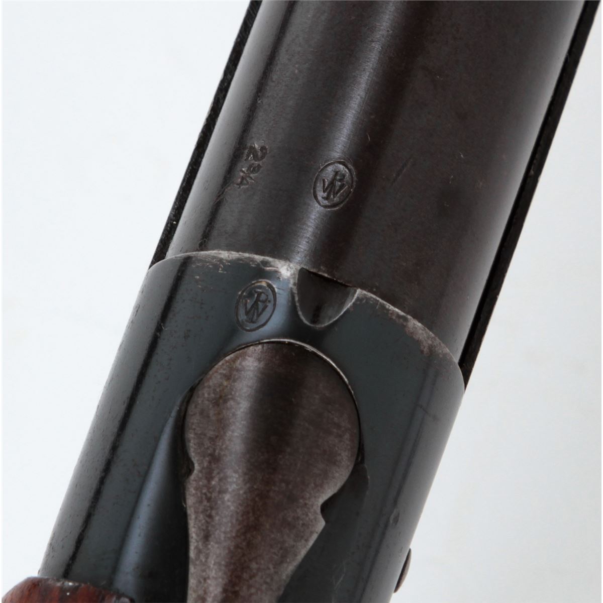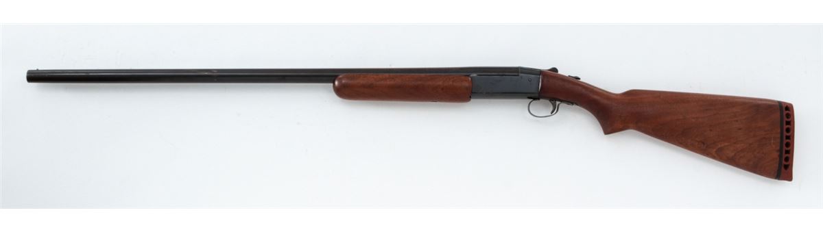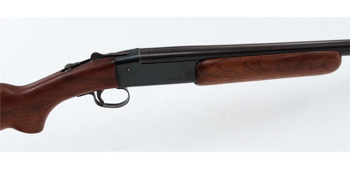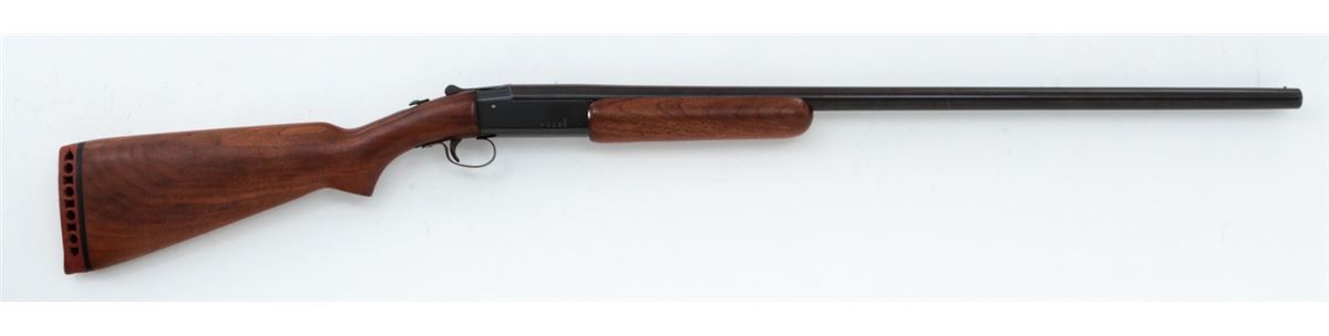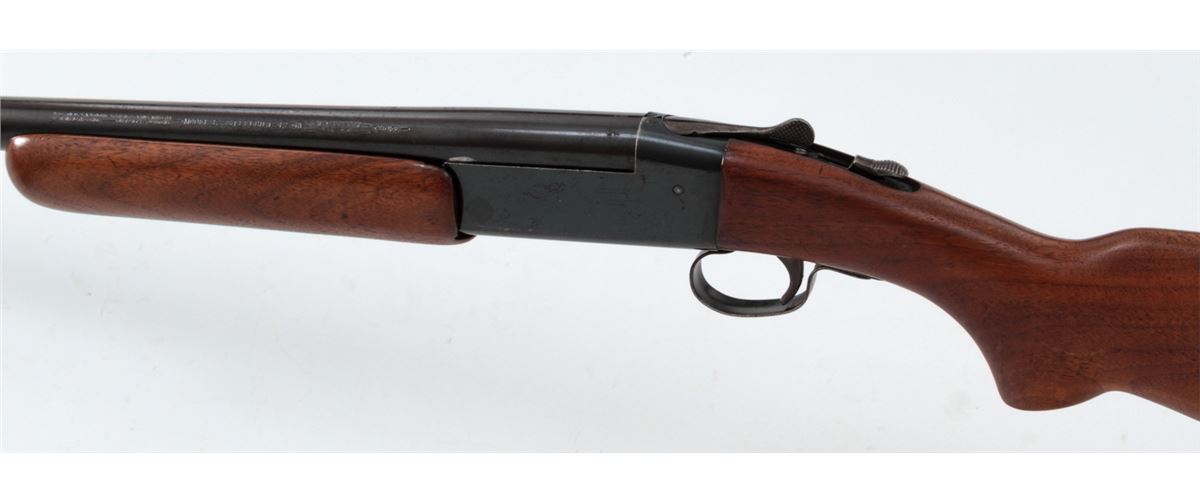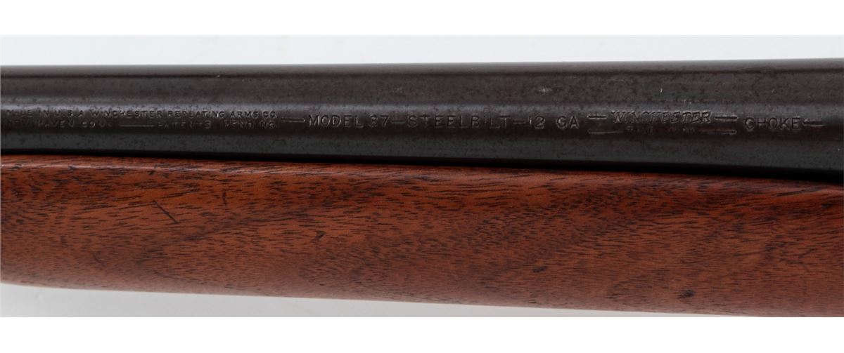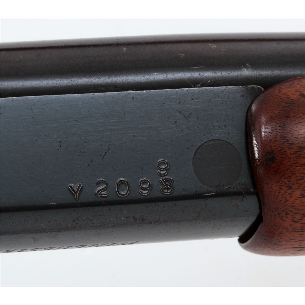 Winchester Model 37 Single Shot Shotgun, NVSN, 12 ga., 30'' barrel, blue finish, walnut stock, with period red rubber butt pad. Condition is about fine retaining approx. 92% thinning and toning blue. Right side of frame with added number ''Y2099''. Stock shows light sanding. Action is good, bore is bright. Est.: $125-$250. (C&R)
