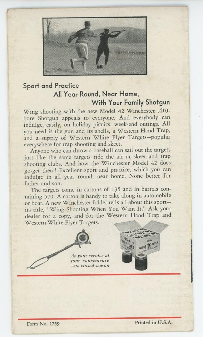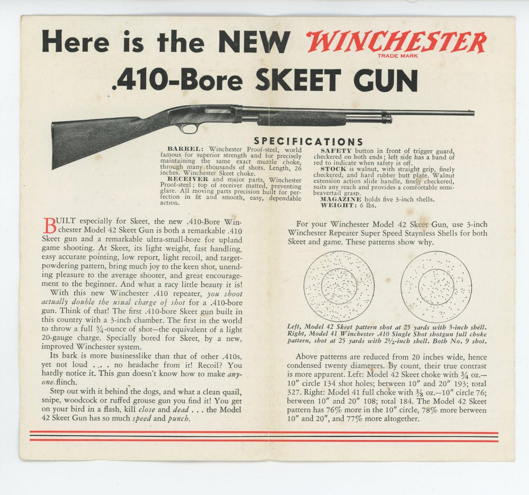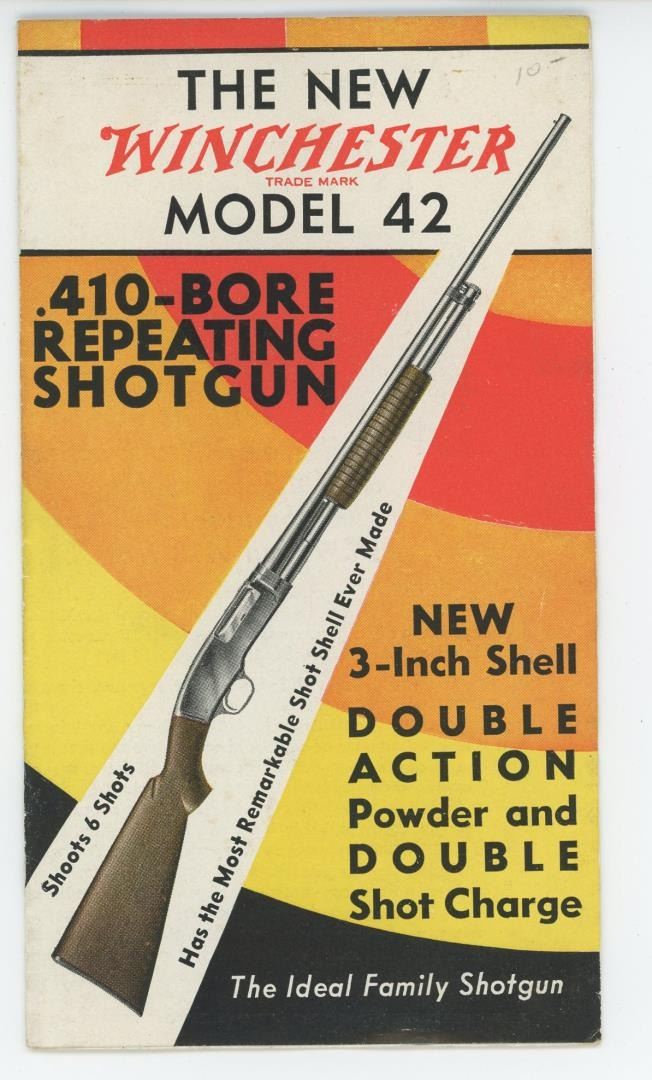 .410 Bore Repeating Shotgun. Introduction of the 3 inch shell with double action powder and double shot charge. Scarce original example