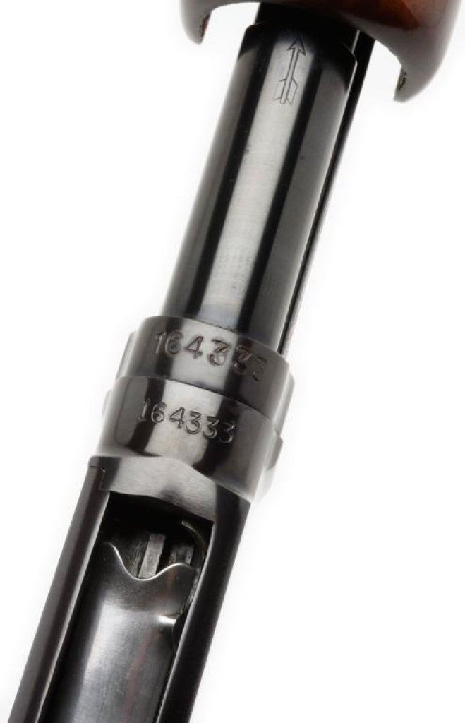 **Winchester Model 42 pump action takedown shotgun, .410 gauge, 3” chamber, full choke, 26” barrel, S/N 164333, blued finish, checkered wood stocks. This beautiful Model 42 is in excellent condition displaying little use and only minor handling. Est.: $900-$1,800.