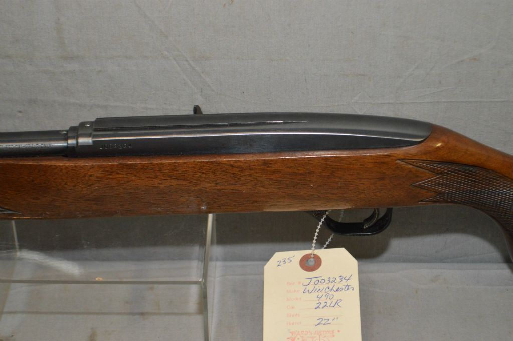 Winchester Model 490 .22 LR Cal Mag Fed Semi Auto Rifle w/22" bbl [ blued finish, barrel sights, including hooded front sight, pressed checkered pistol grip stock & forend, with few marks, Winchester Repeating Arms butt plate, Circa 1974 - 1977 ] Ser # J003234