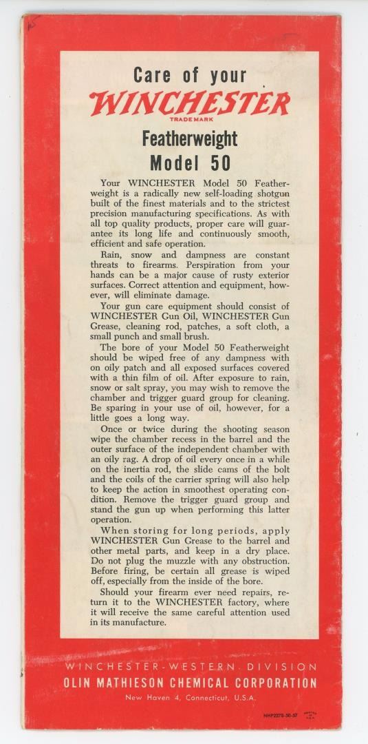 Instructions for you Winchester Featherweight Model 50. Nice original example