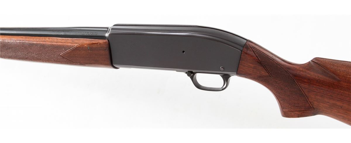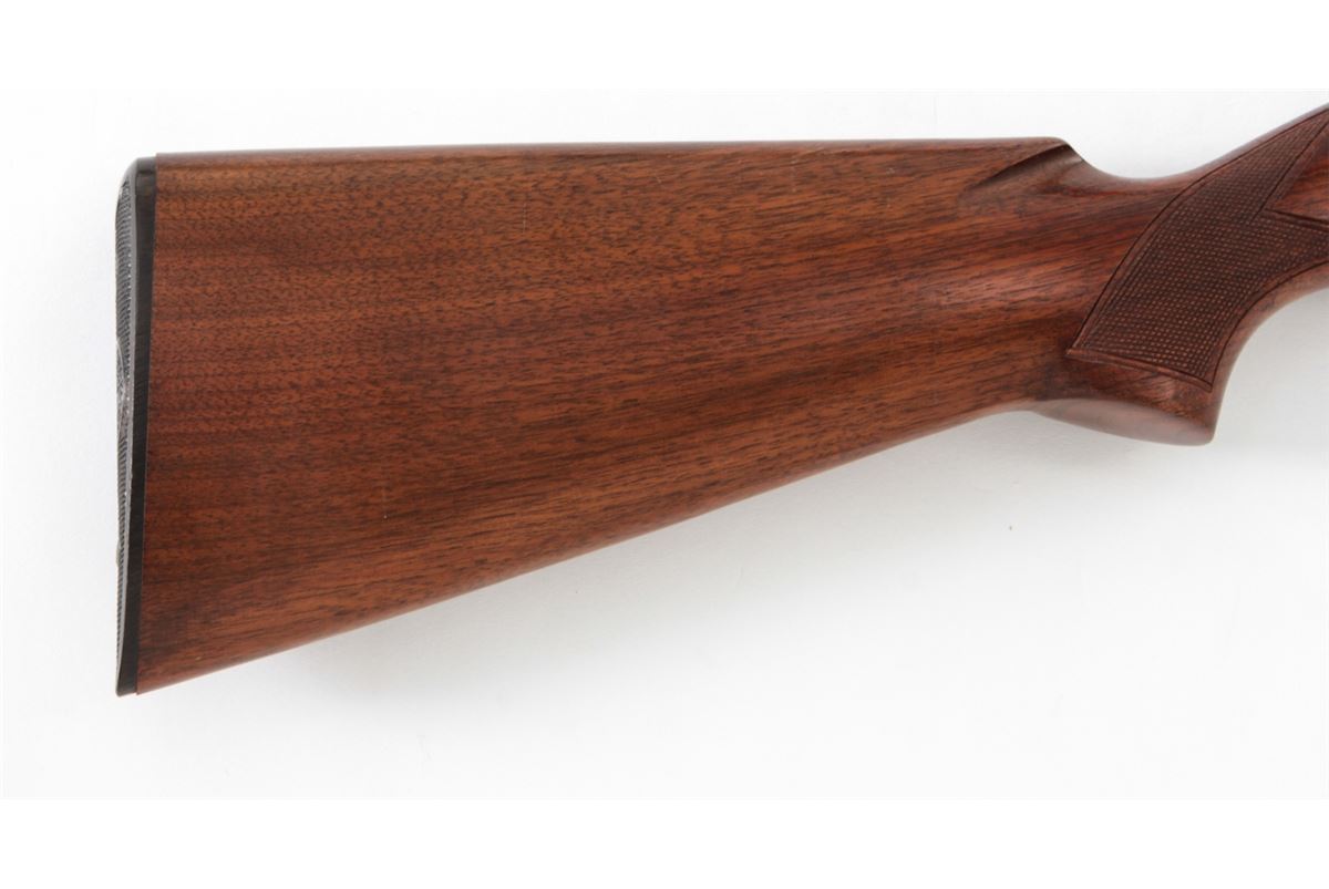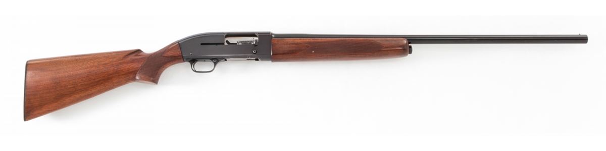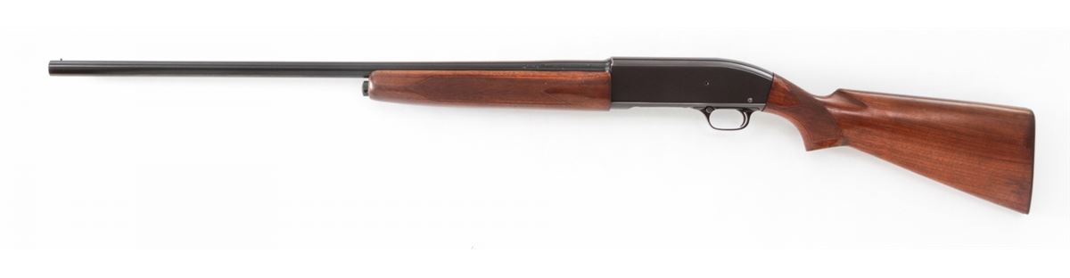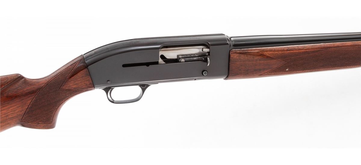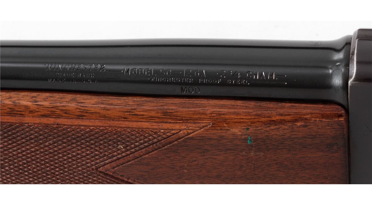 Winchester Model 50 Semi-Automatic Shotgun, #80214, 12 ga., 28'' barrel, 2-3/4'' chamber choked Mod., blue finish, checkered walnut stock. Condition is fine to near excellent retaining 97% blue. Stock shows light scuffs from field use. Good action, fine bore. Est.: $300-$500. (C&R)