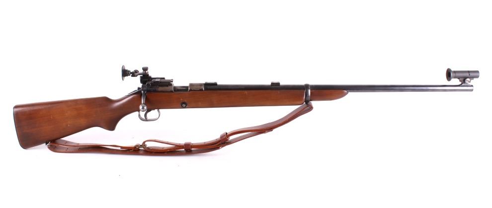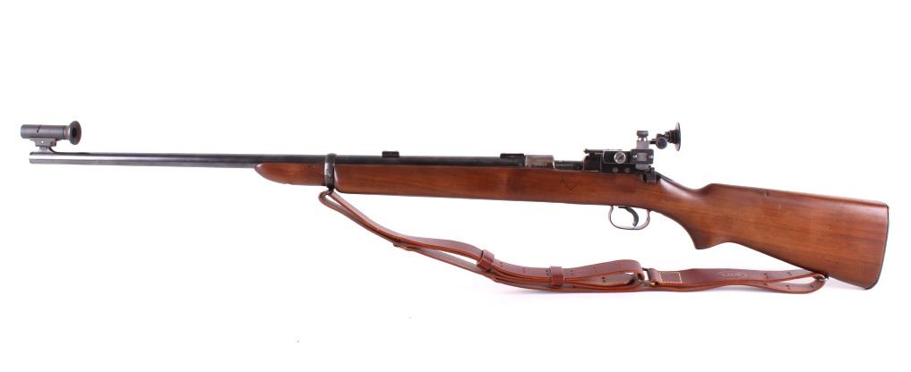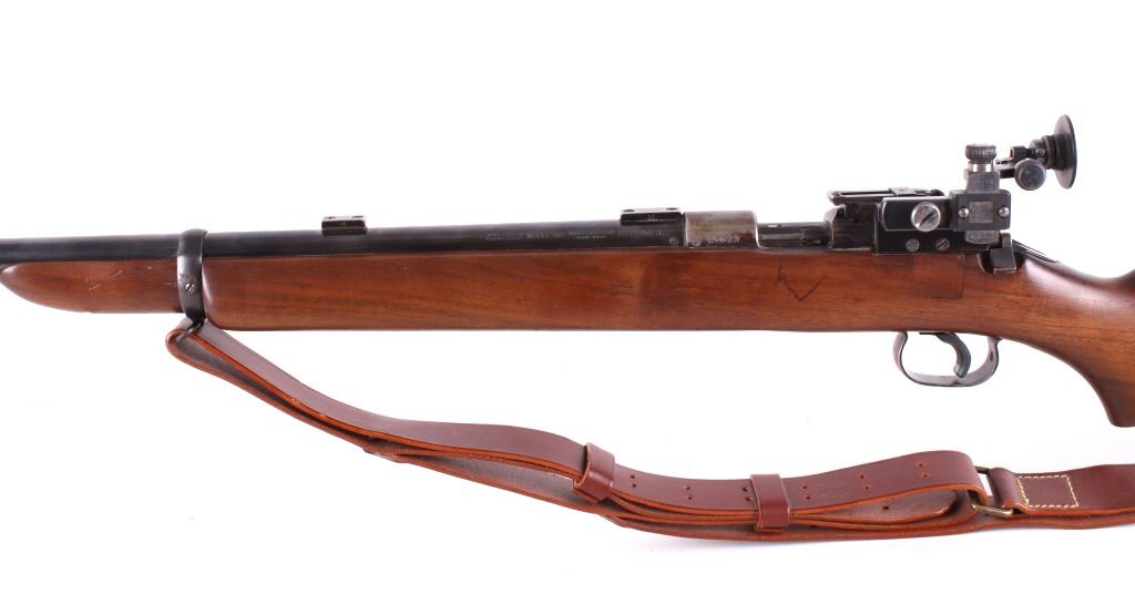 Included in this lot is a Winchester Model 52 .22 L.R. caliber competition rifle. The Winchester Model 52 was a bolt-action .22-caliber target rifle introduced by the Winchester Repeating Arms Company in 1920. For many years it was the premier smallbore match rifle in the United States, if not the world. Known as the "King of the .22's," the Model 52 has been called by Field & Stream one of "the 50 best guns ever made" and by Winchester historian Herbert Houze "perfection in design." This model 52 was manufactured in 1932. These late 52's frequently were fitted with Redfield "Olympic" or "International" match sights which this rifle has. The Model 52 features a straight grain walnut stock and a five round magazine. The blue’d 28” round barrel is marked “Winchester Proof Steel – Model 52 – Winchester Trade Mark – 22 Long R.-“ on the left side. The butt stock is fitted with a metal plate. Serial Number: 26623. This firearm qualifies as a Curio & Relic, and requires FFL Transfer or NICS Background Check. Matt