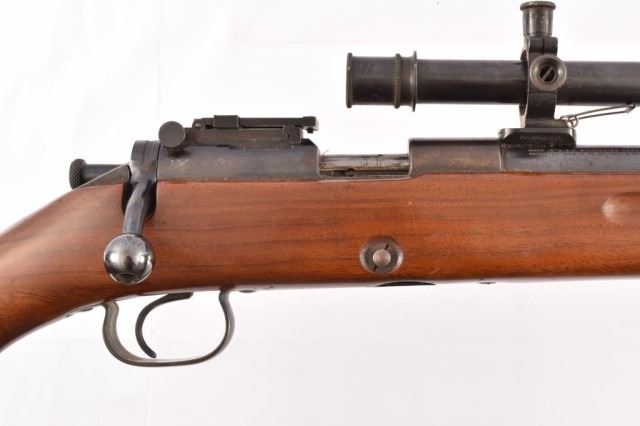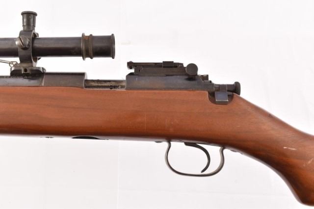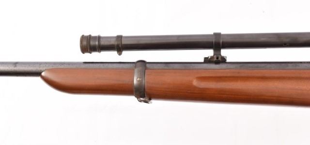 * 28" bbl. Fitted with Winchester A5 15.75" scope, along with flip-up target sight. Minor surface blemishes on left side barrel and receiver housing.