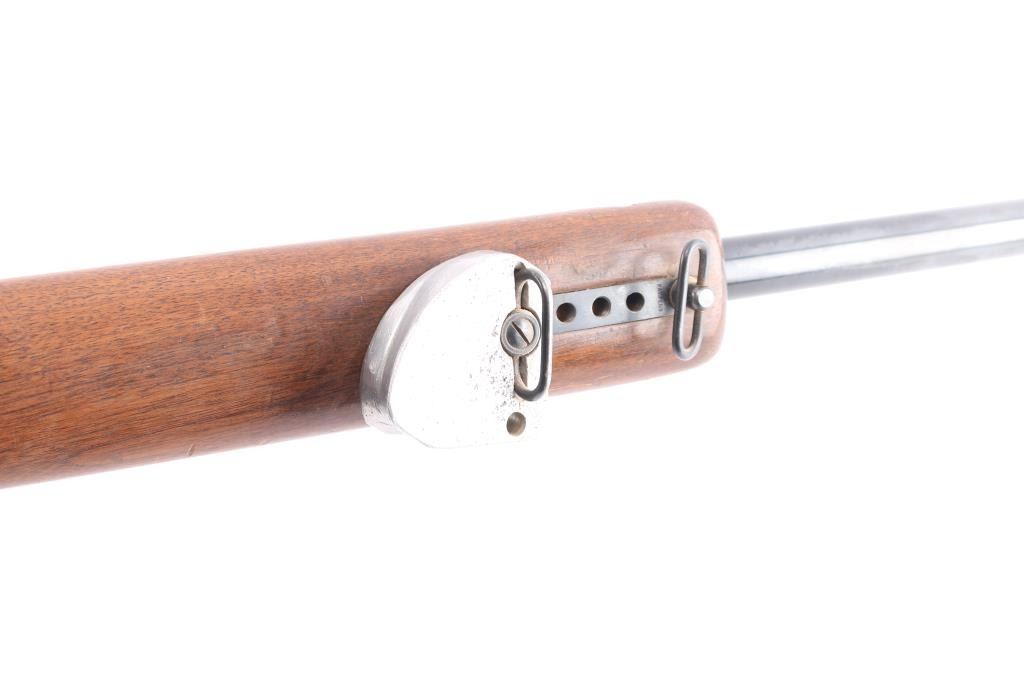 GOOD: Some minor replacement parts; metal smoothly rusted or lightly pitted in places, cleaned or re-blued; principal letters, numerals and design on metal legible; wood refinished, scratched bruised or minor cracks repaired; in good working order.