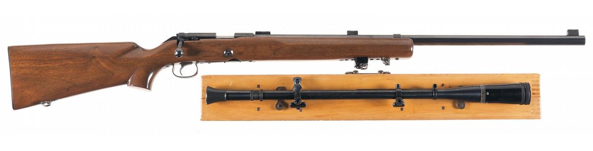 Manufactured in 1960. With extra magazine, Lyman Super Targetspot scope and scope box.