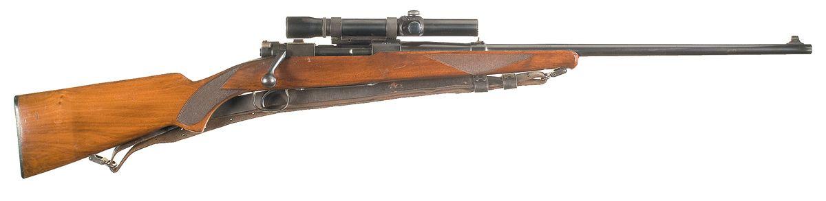 Manufactured in 1926 with standard markings and features. Complete with Echo side receiver scope mount, Weaver K.25 scope and brown military-style leather sling.