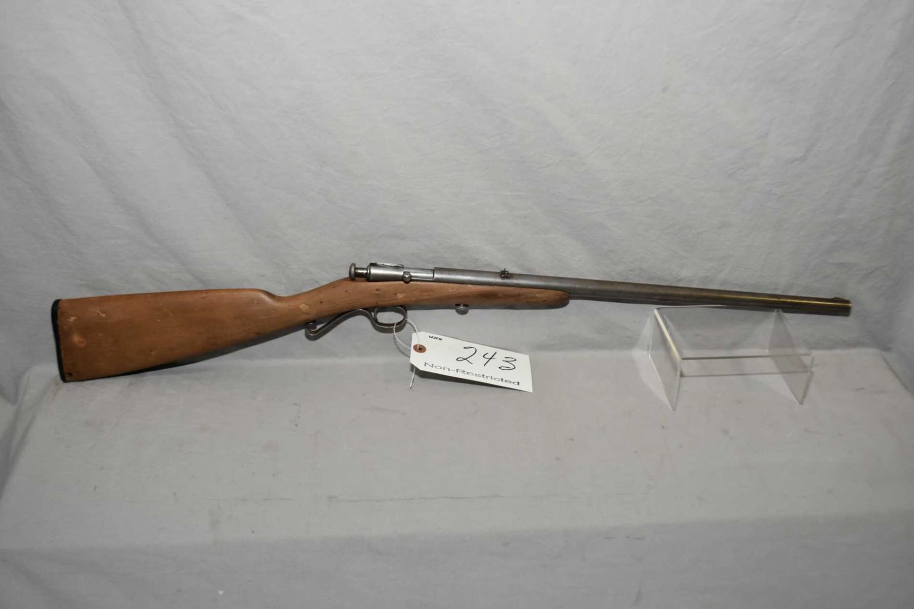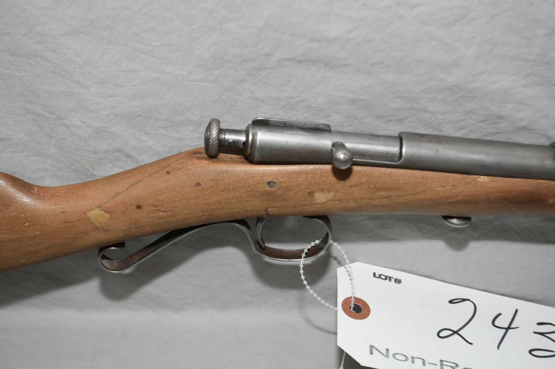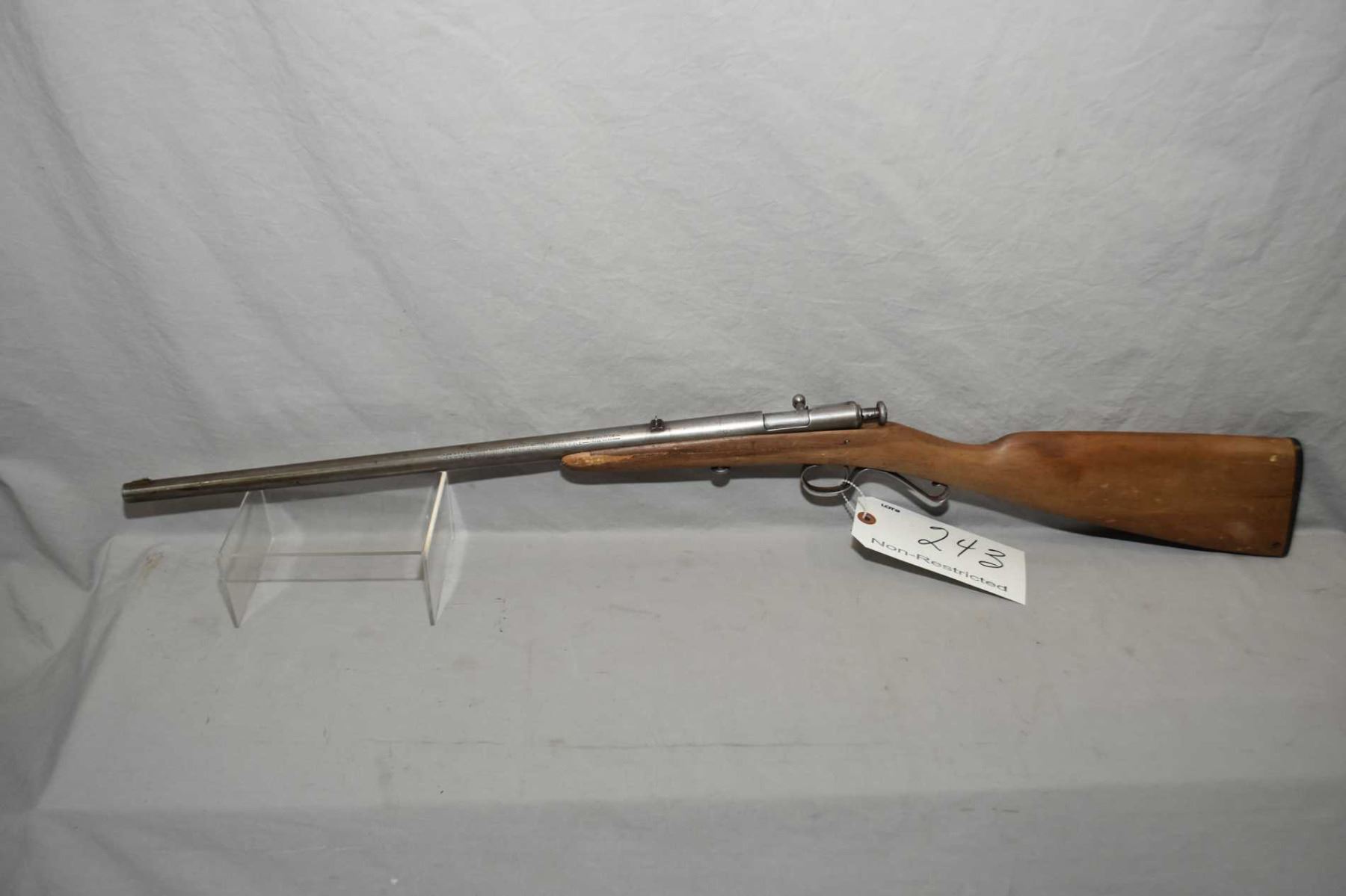 Winchester Model 58 .22 LR Cal Single Shot Bolt Action Rifle w/ 18" round bbl [ blued finish faded to grey in most areas, cracked and repaired stock starting to break again, hole thru butt stock by old butt plate, Circa 1928 - 1934 ] Ser # Nil