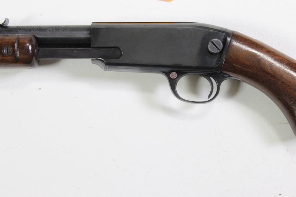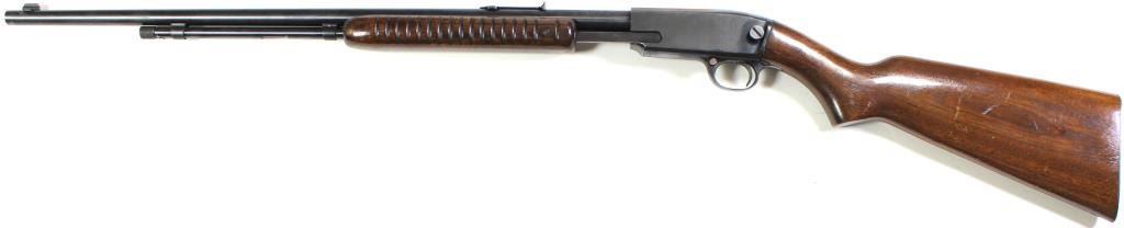 Winchester Model 61 .22 SLLR SN 220841 pump action rifle, 24" round barrel and walnut stocks. Receiver shows nice refinished blues, re varnished stocks good, excellent action and bore. Modern. pump action rifle, 24" round barrel and walnut stocks. Receiver shows nice refinished blues, re varnished stocks good, excellent action and bore. Modern.
