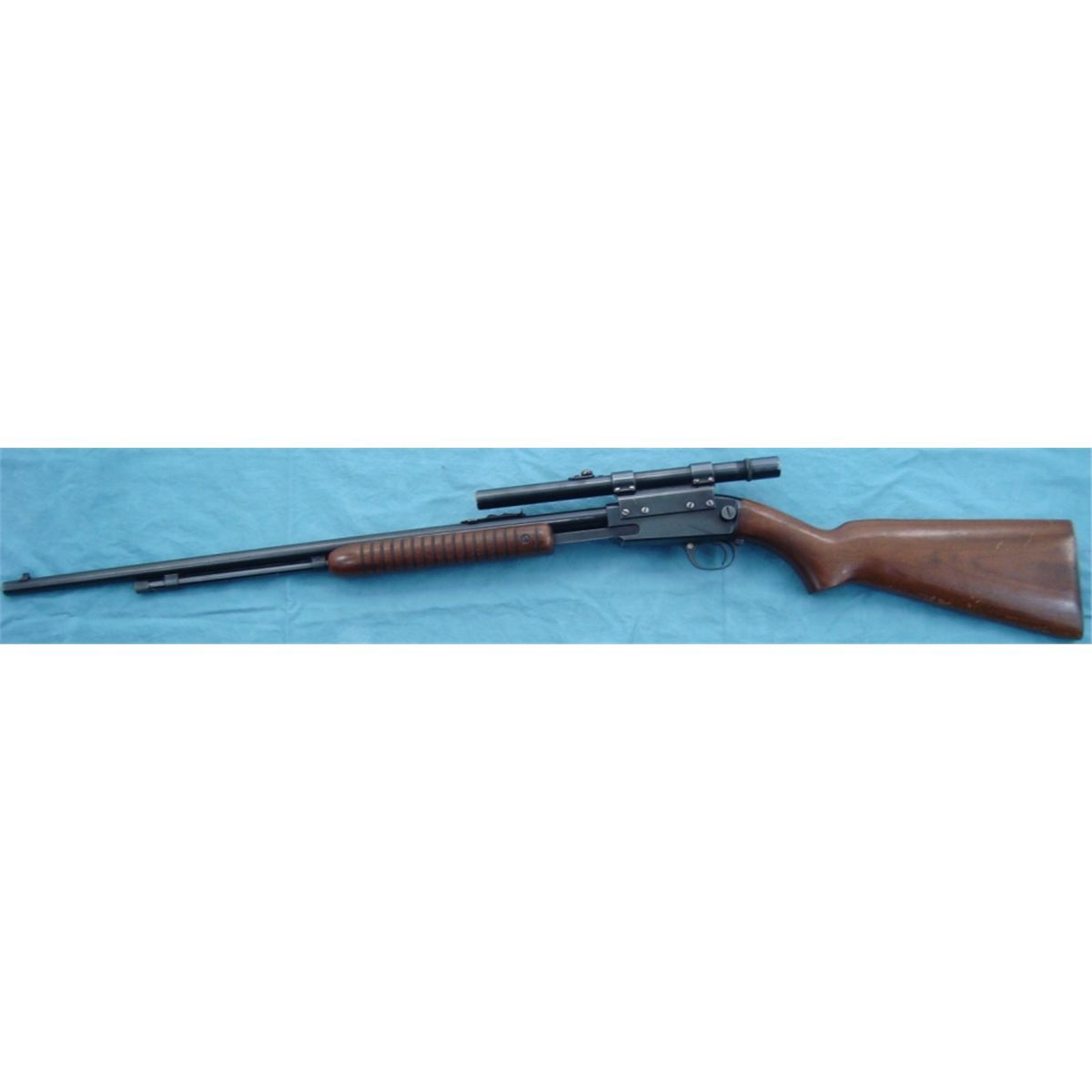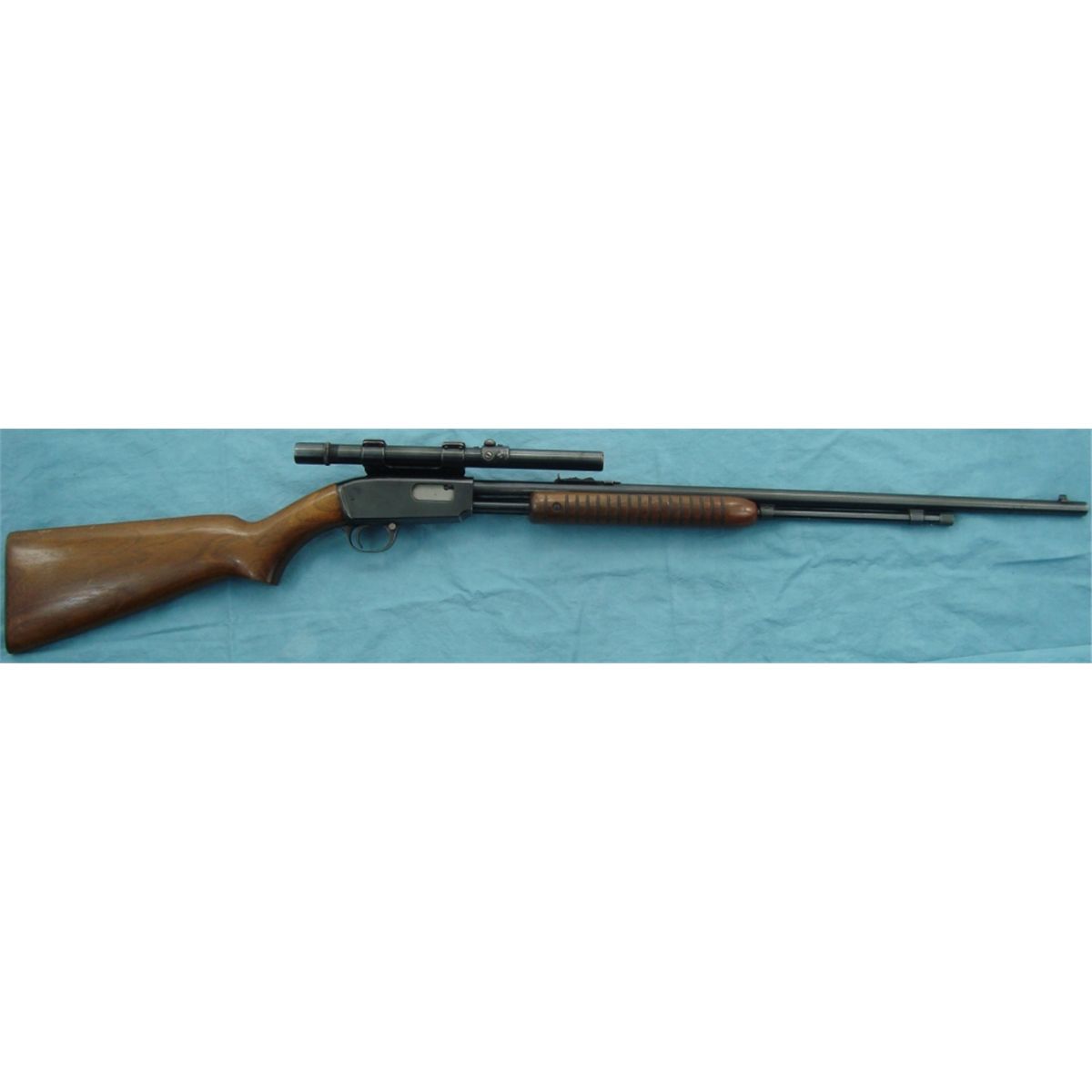 125899; Gun shows very fine original blue. Butt stock shows numerous scratches & dents. Receiver has been drilled for Weaver side mount scope.