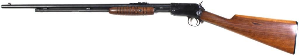 Winchester Model 62 .22 SLLR SN 37015A pump action with 23" round barrel and walnut stocks. Very good as restored condition including blue and stocks. Modern. pump action with 23" round barrel and walnut stocks. Very good as restored condition including blue and stocks. Modern.