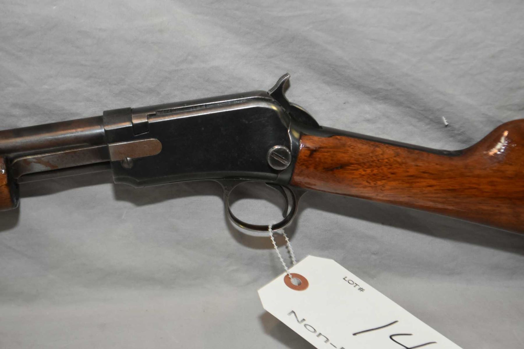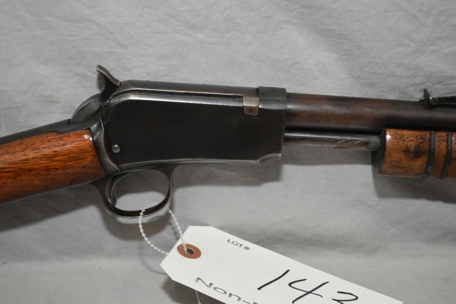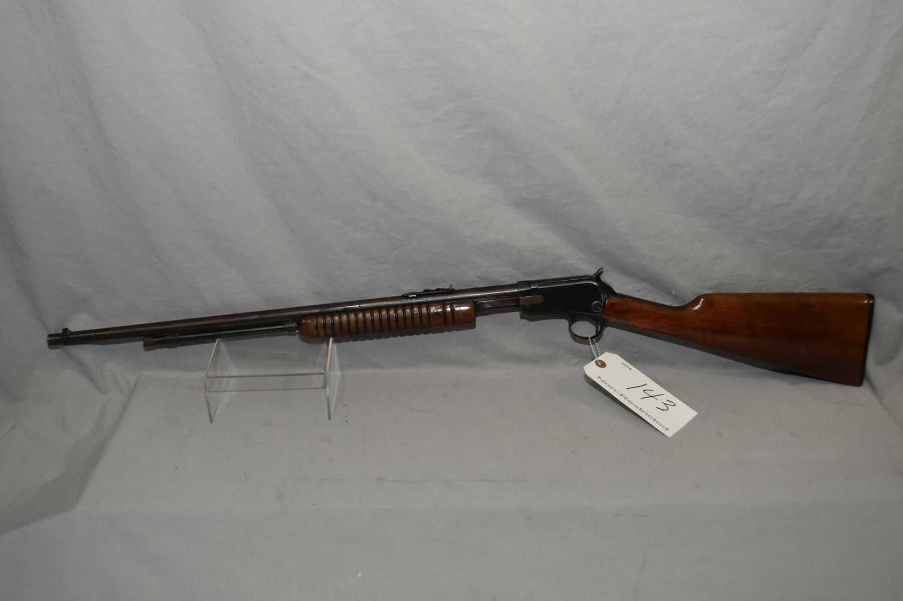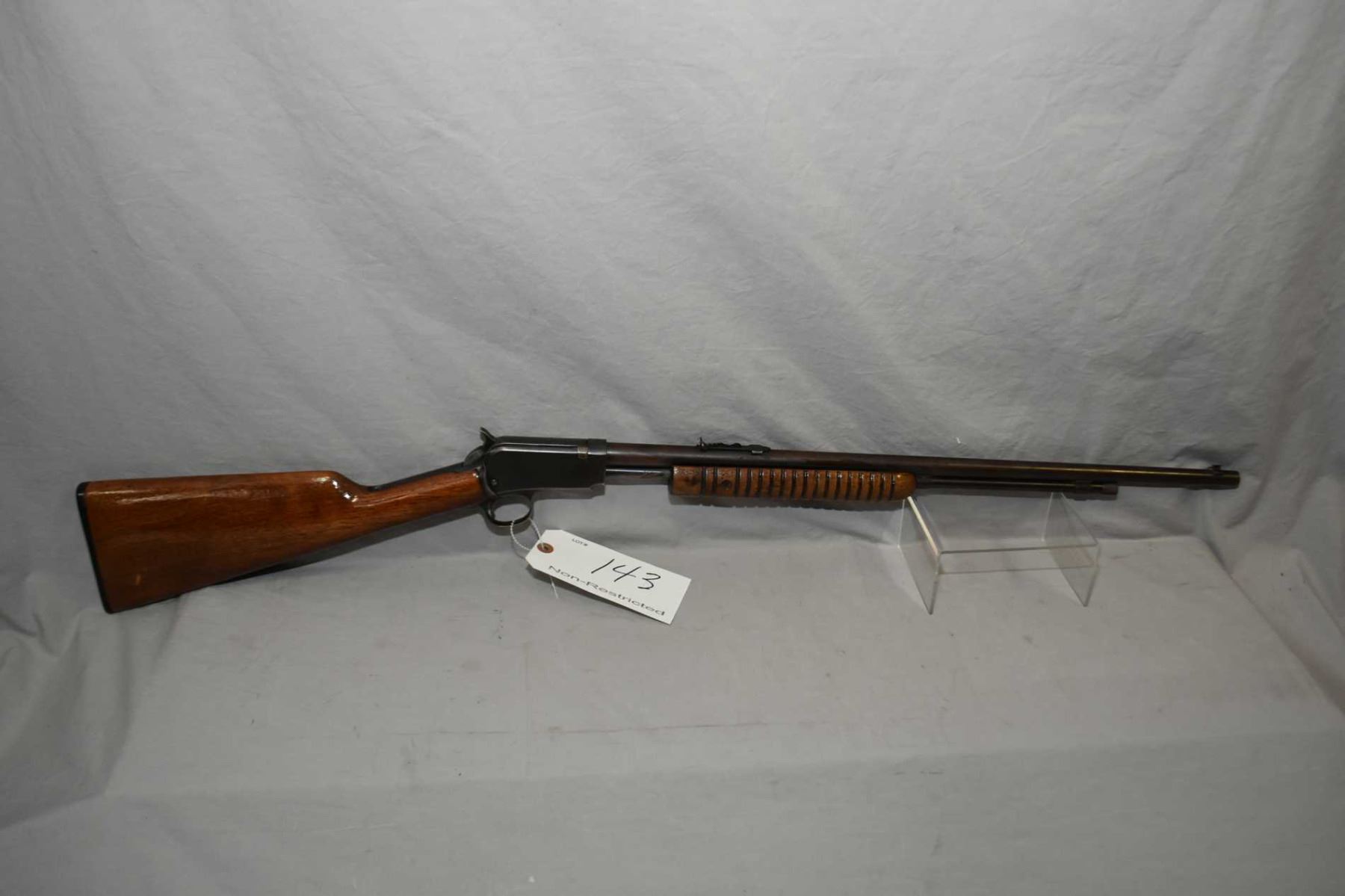 Winchester Model 62A .22 LR Cal Tube Fed Pump Action Rifle w/ 23 " round barrel [ fading blue finish turning brown in some areas, revarnished wood with some over spray on metal, Winchester Repeating Arms Co. black butt plate, Circa 1947 ] Ser # 212894