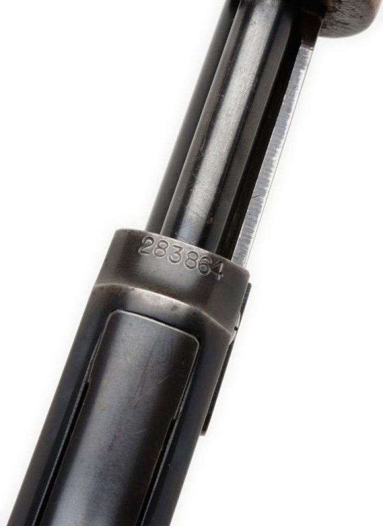 *Winchester Model 62A pump action rifle, .22 short, long or LR caliber, 23” round barrel, S/N 283864, blued finish, wood stocks, in overall very good + condition with area of finish toned to brown near muzzle; very good + bore, crisp action and very good wood. Est.: $300-$600.