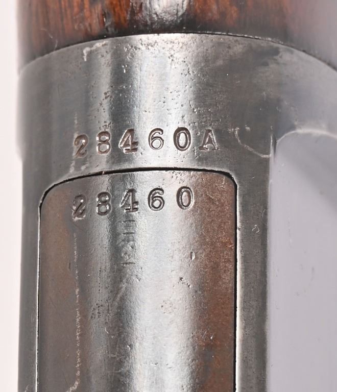 S/N 28460A, manufactured 1938. Blue finish, 19" barrel marked "Super Speed, Super-X". Good bore and action. Repaired crack in forearm. Tang rear sight. Modern.