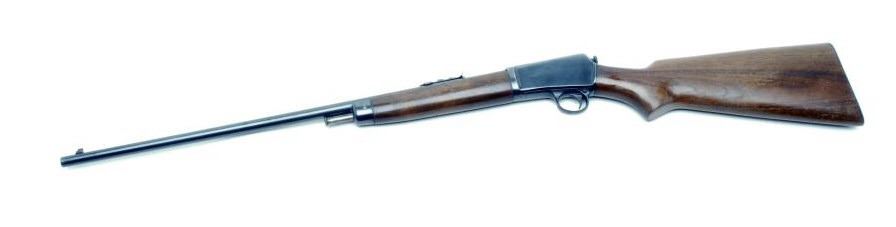 Winchester Model 63 semi-automatic rifle, .22LR Super Speed and Super-X caliber, 23” round barrel, S/N 118676A, blued finish, wood stocks in overall very good to fine condition with a fine bore, crisp action and markings, majority of originalblue remaining, very good wood with loss to finish on butt stock and an old small crack at the left wrist that is horizontal and approximately 2” long, not appearing to affect the integrity of the butt stock; two extra non-factory tap holes intop of receiver for scope mount. (C&R/PPT). Est.: $350-$700.