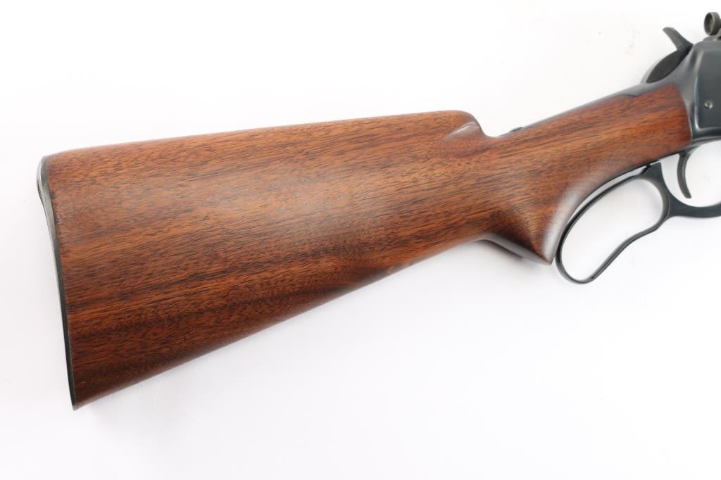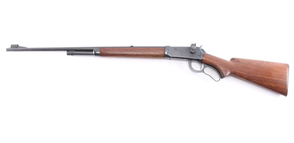 Vintage Winchester lever-action manufactured in 1942. a total of 66,783 were produced 1933-57. Standard Winchester markings including the factory proof on top of the barrel and receiver. Equipped with a blade/bead front sight mounted on a ramp with a removable, rear sight removed with steel insert in dovetail, vintage Redfield 102 BR peep sight installed on left receiver. Two thirds tubular type magazine with 5 cartridge capacity. Smooth American walnut pistol grip stock, and forearm and a checkered steel buttplate. 24" round barrel. Bore is excellent/bright, action is crisp/smooth, original blue finish is about 97% with very minor edge wear/scratches, wood is excellent.