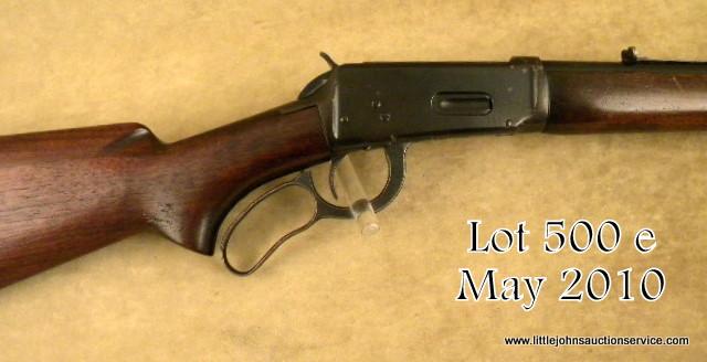 Winchester Model 64 lever action rifle, .30 WCF cal., 24” round barrel, half magazine, re-blued finish, wood stocks, #1634585. This gun is in overall good condition as re-finished showing the majority of re-blue on metal surfaces, good bore,action and markings, re-finished wood in overall good condition with some scattered scratches and mars. Est.: $250-$450.