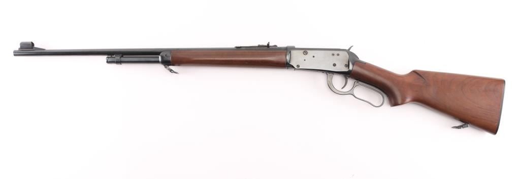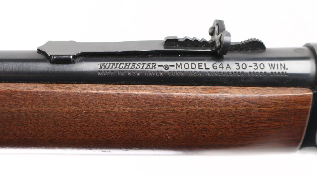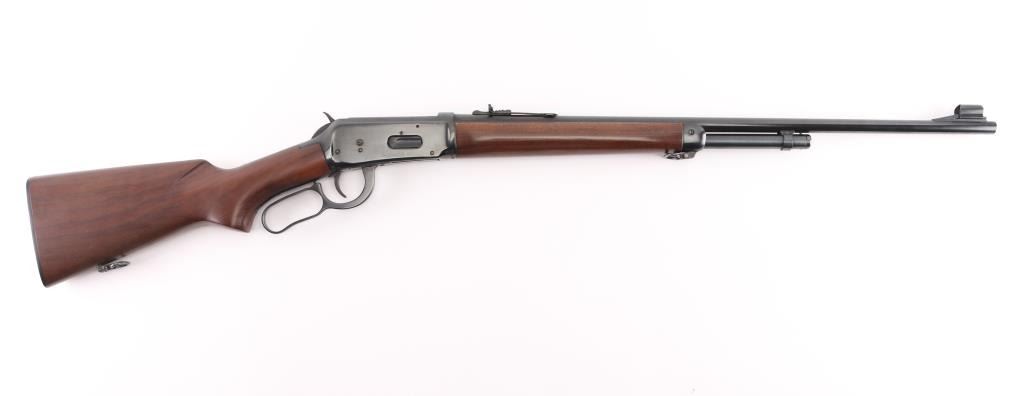 Winchester produced approximately 67,000 Model 64's between 1933 and 1957, this rifle was made in 1957 and features a ramp, hooded post/bead front sight, adjustable semi-buckhorn rear sight, standard markings, 24" barrel, 3/4 tubular magazine and smooth forearm and pistol grip stock with factory checkered buttplate, sling swivels. This rifle has been professionally restored. Bore is excellent/bright, wood is excellent, re-blued finish is about 99% with a couple of minor scratches. Action is crisp/tight. NRA Condition-Excellent/Restored. C&R Firearm.
