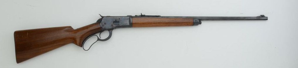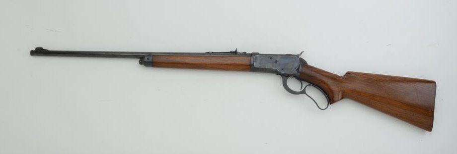 Winchester Model 65 lever action rifle, .32 W.C.F. cal., 22” round barrel, button magazine, blue finish, wood stocks, checkered steel butt plate, #1001357 in overall fine condition showing the majority of itsoriginal muted blue finish, fine bore, action, markings and wood stocks with some scattered mars and scratches from storage. Only about 5,700 of this model were manufactured between 1933 and 1947. Est.:$2,500-$3,500.