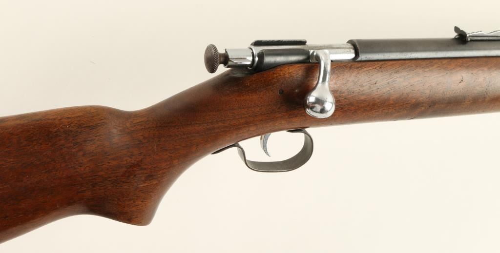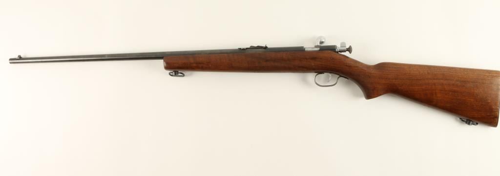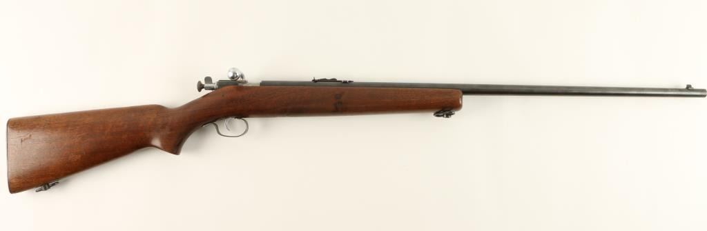 Winchester Model 67 bolt action rifle, .22 short, long or LR caliber, 27” round barrel, no visible S/N, blued finish, wood stock in overall very good condition showing the majority of its original blue finish, crisp action, very good markings,fine bore and overall good stock with sling swivels and some scattered old mars and scratches from storage. (C&R). Est.: $125-$250.