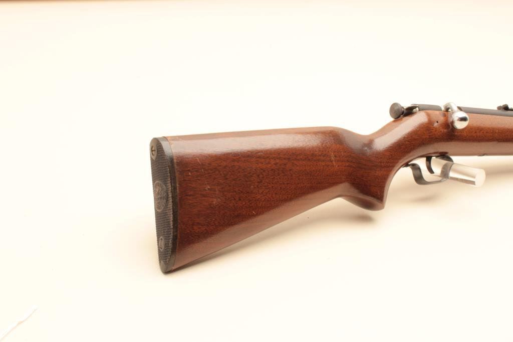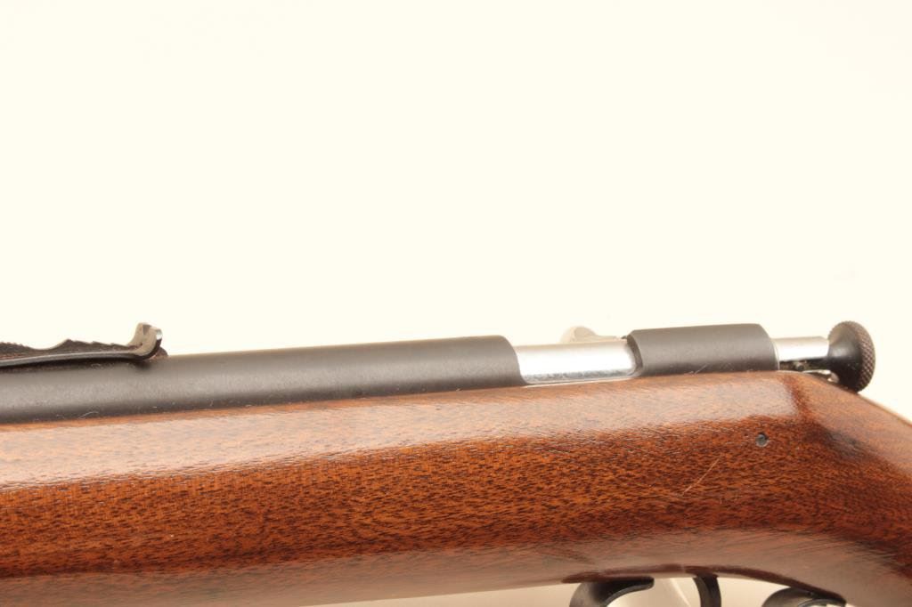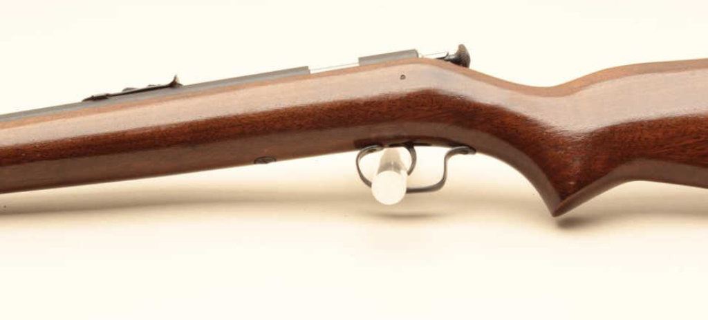 The rifle is in very good overall condition with a 20” barrel. The barrel and receiver retain the majority of their blue finish with only minor handling marks noted. The smooth wood stock is in very good condition with small mars and compressions and a Winchester marked plastic butt plate. The bore is good, the action crisp and markings sharp. (Modern). Est.: $100-$200.