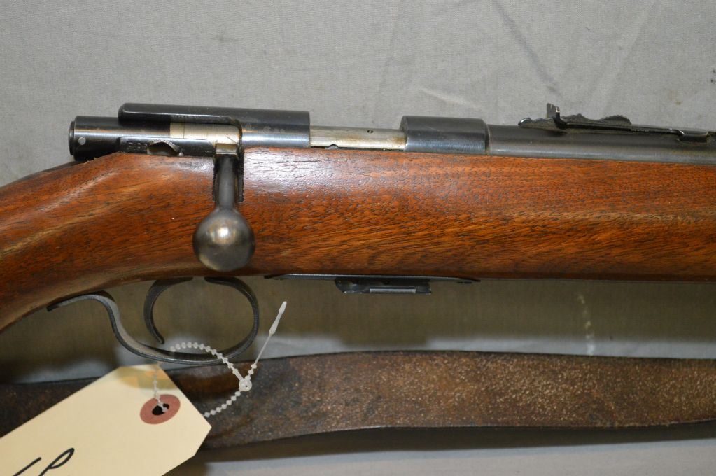 Winchester Model 69 A .22 LR cal Mag Fed Bolt Action Rifle w/ 25" bbl [ blue finish w/some surface rust, barrel sights, good pistol grip stock, Winchester butt plate, old leather sling ] Ser # Nil