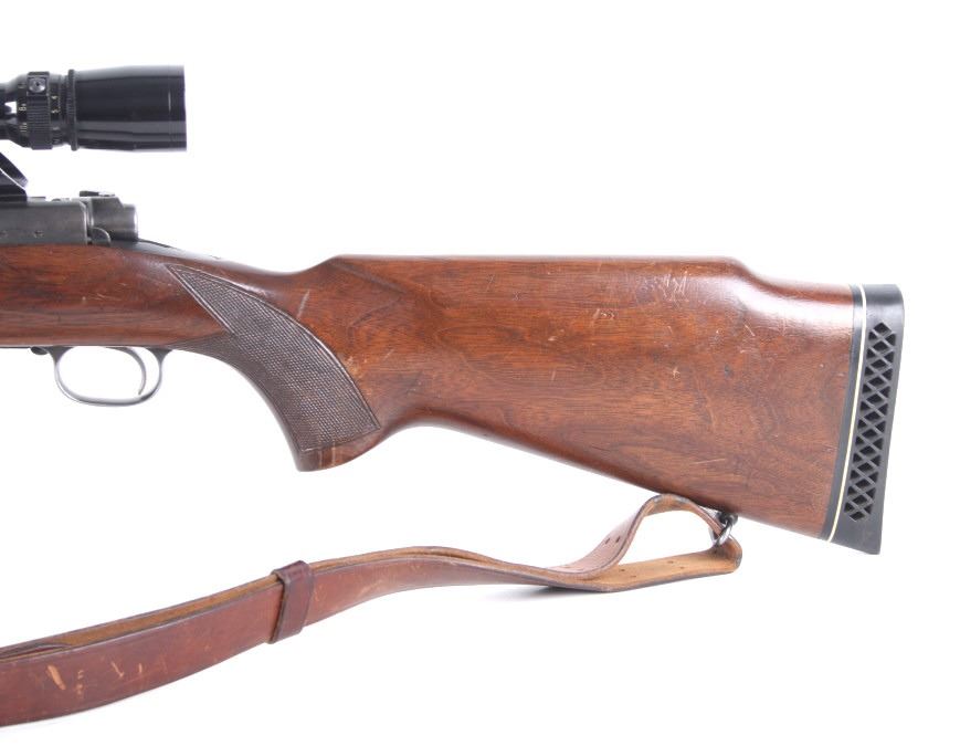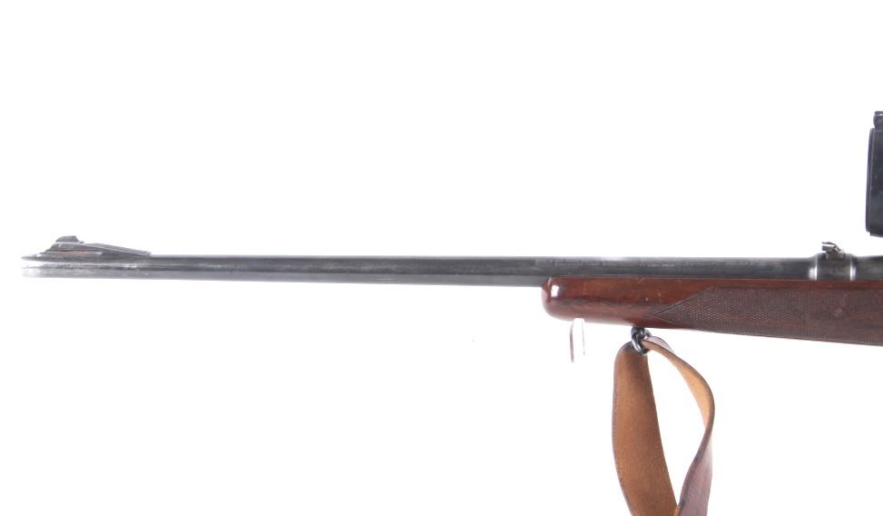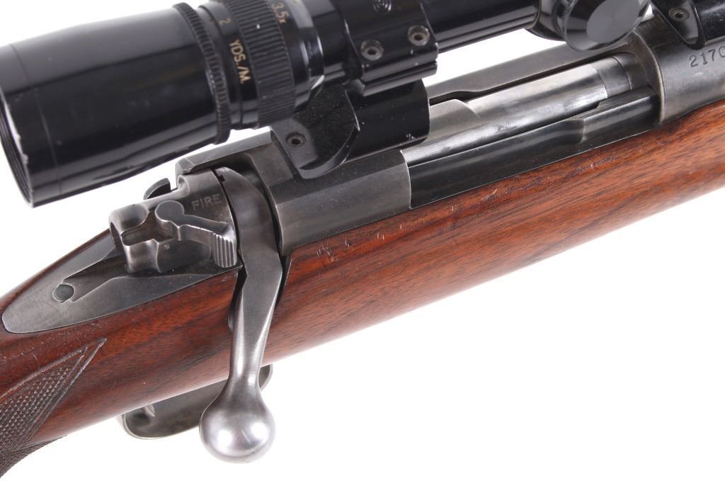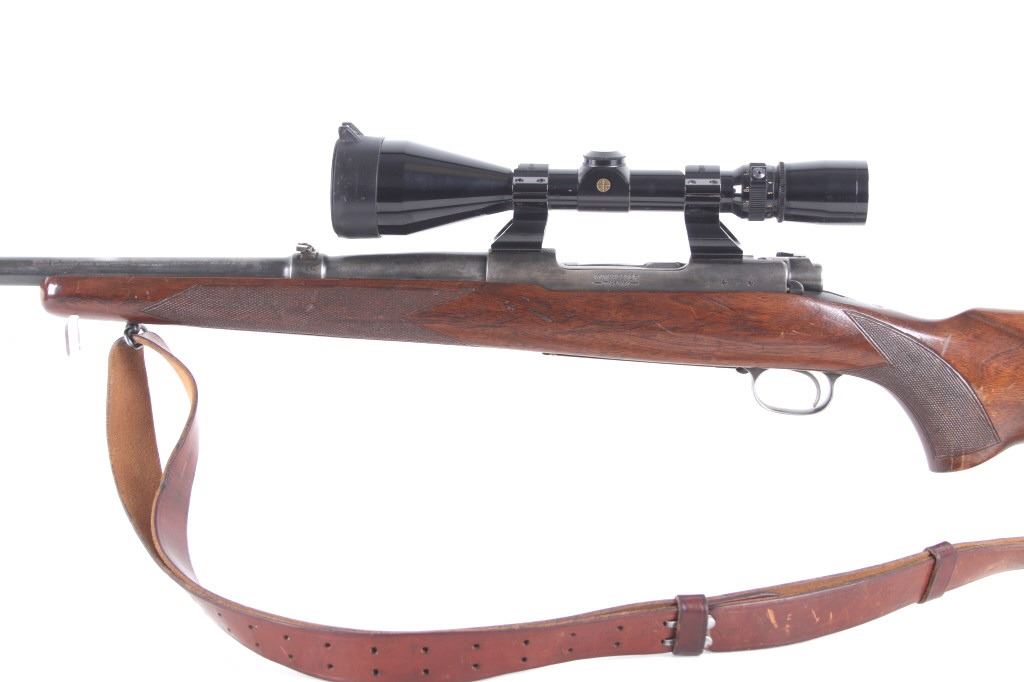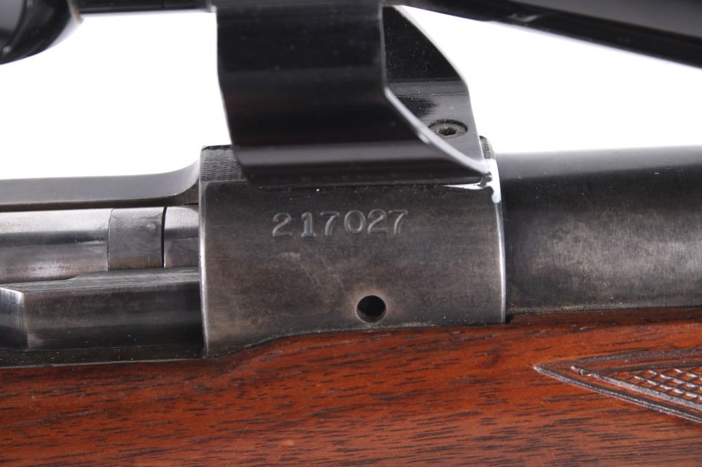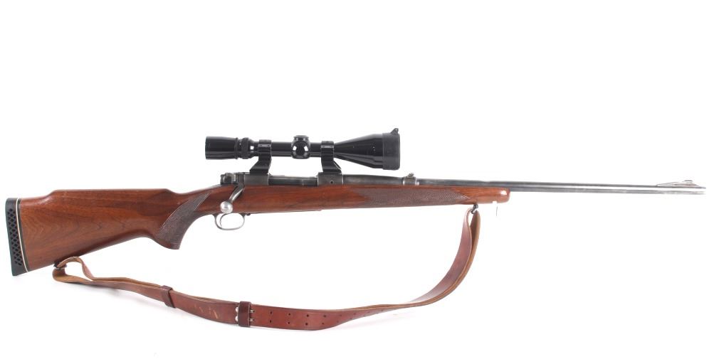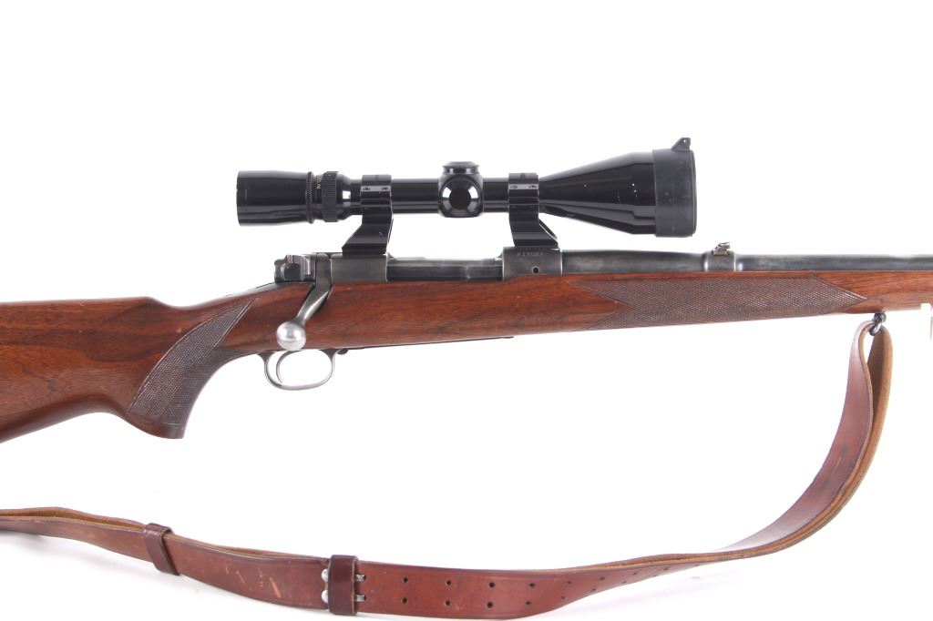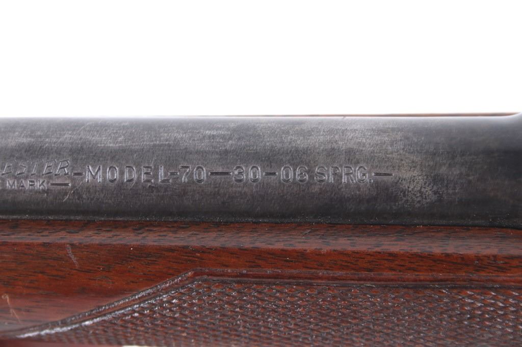 Featured in this lot we have a Winchester Model 70 bolt action hunting rifle chambered in .30-06 springfield. The Mod. 70 was largely based off of the Model 54, and was nicknamed "The Rifleman's Rifle". Additionally, the Mod.70 was coined as the "Bolt Action Rifle of the Century" by Shooting Times Magazine, in 1999. The Model 70 began production in 1936, with this example originating from 1952. This fine rifle utilizes cut-checkered texture on the walnut fore-grip and pistol grip. The rifle is marked in numerous places on the 23 1/2" blue'd barrel, reading; "Made in New Haven, Conn. U.S. of America Winchester Proof Steel - Winchester Trade Mark - Model 70 - 30-06 SPRG" with the receiver marked "Winchester Trade Mark". The rifle includes the original front sight, and adjustable semi-buckhorn rear sight. Overall, the rifle shows very good mechanical condition, and good aesthetic condition. The walnut butt-stock and fore-grip shows some light wear from use, and transport. Serial Number: 217027. This is a modern firearm and requires a FFL transfer or NICS background check.