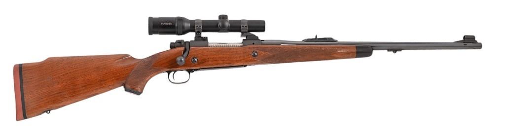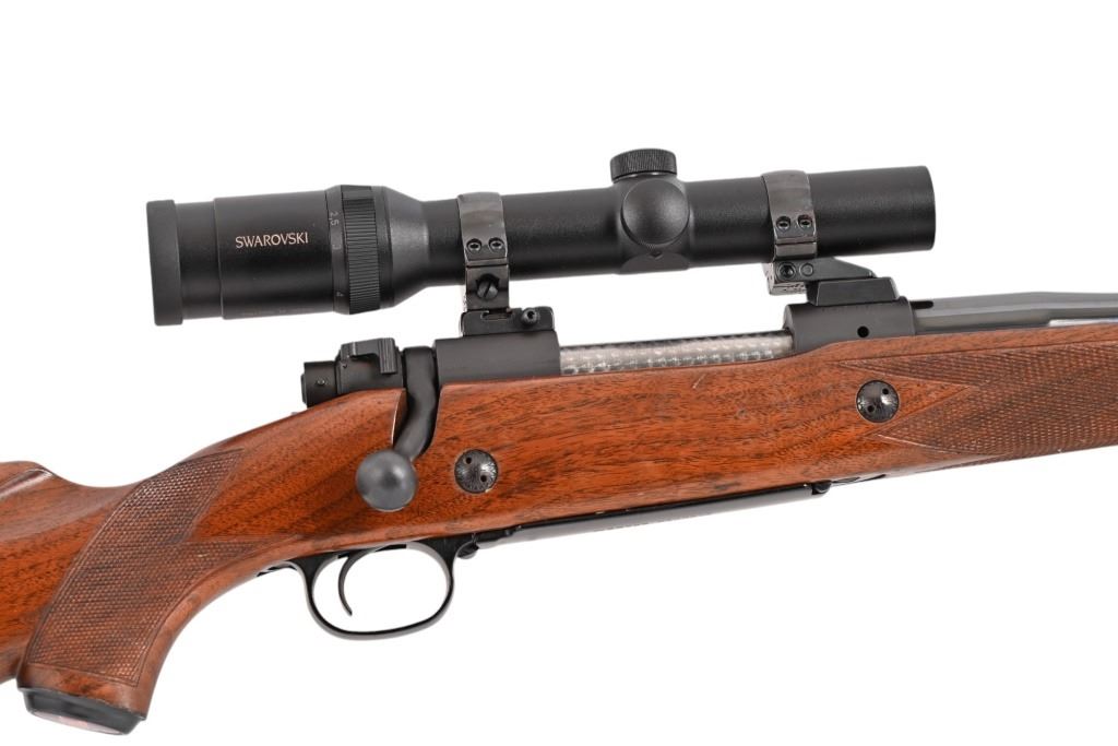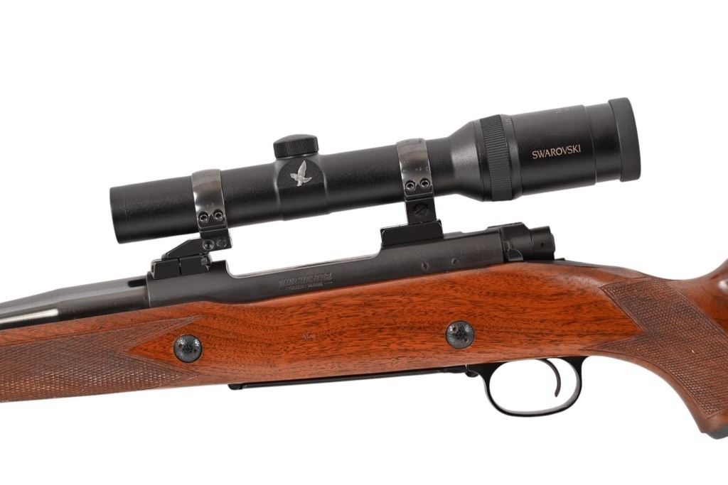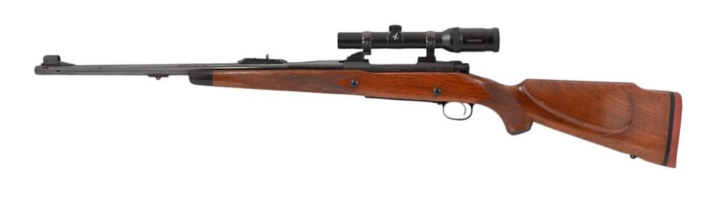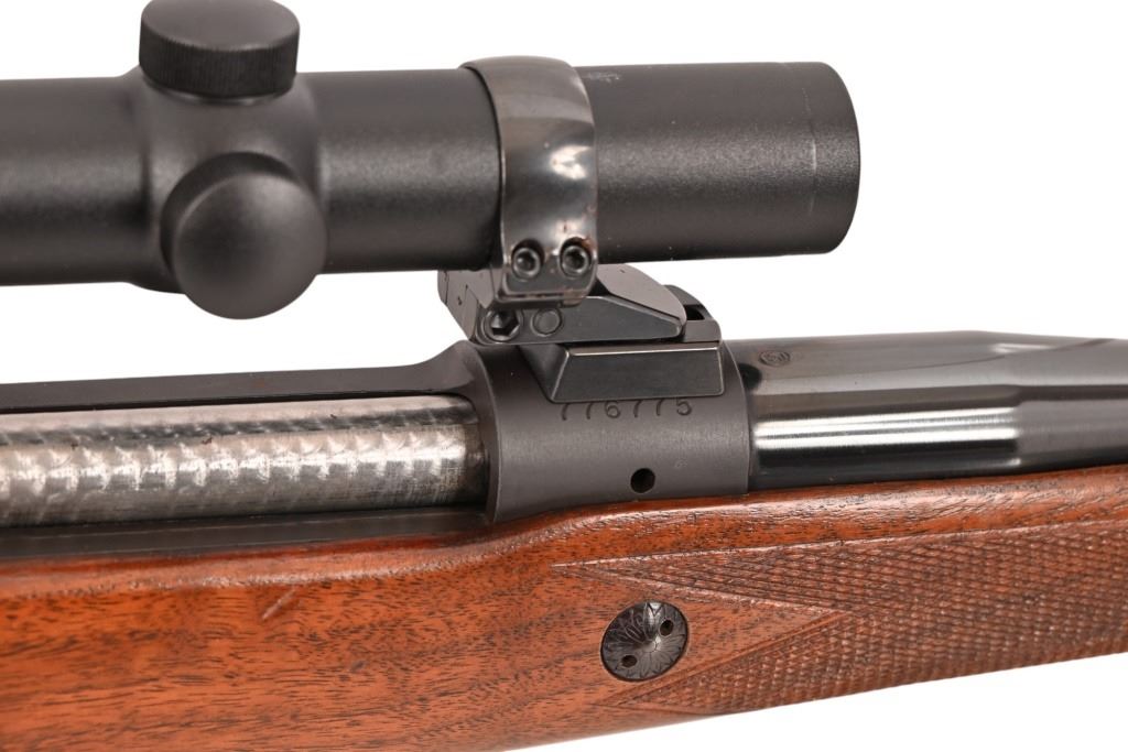 S/N 776775, manufactured 1965. Heavy ported 22" barrel, Swarovski Habicht 1,25-4x24 scope, jeweled bolt, checkered wood stock. Very nice condition rifle, minor surface rust flecks and handling marks on wood. Modern