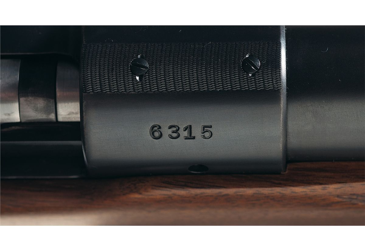 Very fine as professionally refurbished/restored. The rifle retains nearly all of the blue finish showing the slightest handling marks. The stock is very good with a small hairline crack near the receiver and buttplate tangs and a few light handling marks with crisp checkering. Mechanically excellent.