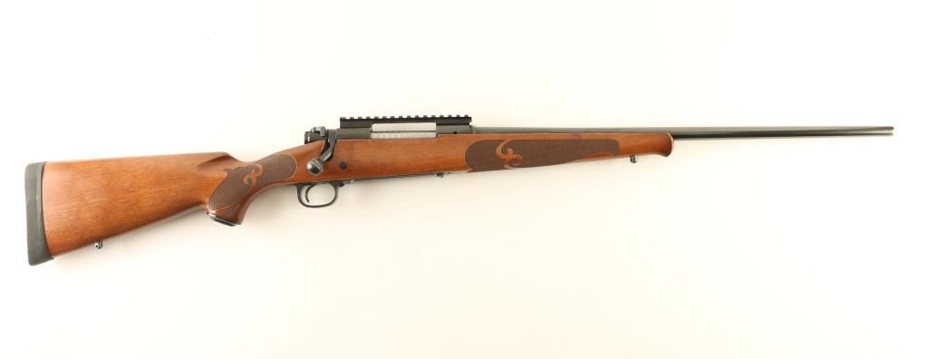 SN: G1950197 Light weight push feed bolt action sporting rifle chambered in .270 Winchester, manufactured in New Haven, Conn. Circa 1989. Features a blued finish, 22" tapered barrel with no provisions for sights, installed one-piece EGW 0 MOA aluminum scope rail, adjustable serrated trigger, machine turned bolt with swept-back handle, three-position safety on the rear of the bolt, 3 round internal box magazine with hinged floorplate, and fancy checkered walnut semi-pistol grip shoulder stock with schnabel forend, black polymer grip cap, swivel studs, Decelerator recoil pad (unfitted) and 14” LOP. Rifle retains approximately 99% of its original blued finish showing very little wear. Action is smooth, the bore is excellent, and the wood stock is near fine with semi-worn points & minor blemishes. Condition is NRA Excellent. ***Modern Firearm***