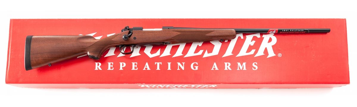 Winchester Model 70 Sporter Bolt Action Rifle, #35AMN08197, .300 WSM cal., 24'' barrel, blue finish, checkered pistol-grip walnut stock, Decelerator recoil pad and gun lock, in original box with matching end label and owner's manual. Condition is excellent, remaining new and unfired. Barrel with original Winchester sticker still intact. Retails @ $830.95. Est.: $500-$750. (Modern) (Field Time)