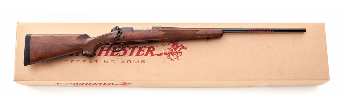 Winchester Model 70 Sporter, #35EZX05184, .30-06 cal., 24'' barrel, blue finish, checkered pistol-grip walnut stock, Decelerator recoil pad and gun lock, in box with matching end label and owner's manual. Condition is excellent, remaining new and unfired. Barrel with original Winchester sticker still intact. Retails @ $879.95. Est.: $500-$750. (Modern) (Field Time)