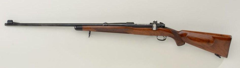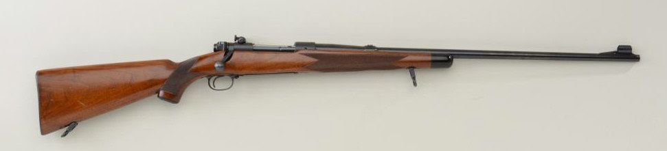 Winchester Model 70 Super Grade bolt-action rifle, .300 Magnum cal., 26” barrel, Lyman adjustable rear sight, hooded ramp front sight, extended sling swivels, #140369. This gun is in overall excellent condition showing approx. 98% original finish, fine bore, action, markings and wood stock with checkered steel butt plate. Est.: $1,250-$2,500.