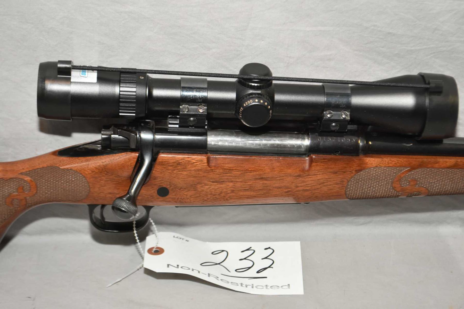 Winchester Model 70 XTR Featherweight .243 Win Cal Bolt Action Rifle w/ 22" bbl [ appears v - good, blued finish, few slight marks, blued finish, barrel sights, also fitted with Bushnell Elite 4200 3 x 9 x 40 Rain Guard HD Variable Scope in Weaver rings, w/caps, Levy's nylon cartridge holder, Winchester recoil pad ] Ser # G157l053