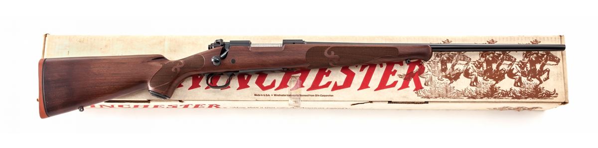 Winchester Model 70 XTR Featherweight Short Bolt Action Rifle, #G1681342, .308 Win. cal., 22'' barrel, blue finish, checkered walnut stock, Winchester red rubber buttpad, in original box with matching end label. Condition is excellent with only a few light overall marks from handling and shallow micro-scratching to receiver. Action is crisp, bore is bright. Est.: $600-$800. (Modern)