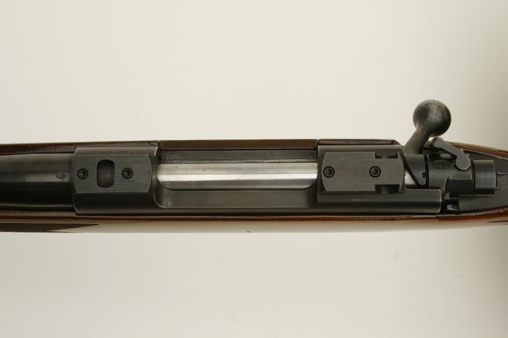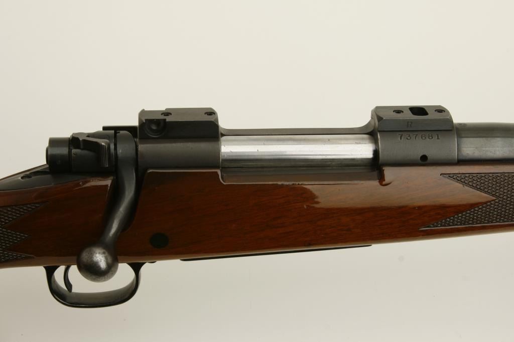 caliber, 22” barrel, blued finish, checkered wood stock, S/N 737681, in overall very good condition showing scope mounts on top of receiver, very good bore, crisp action, sharp markings and very good wood stock as re-finished. (Modern). Est.: $400-$800.