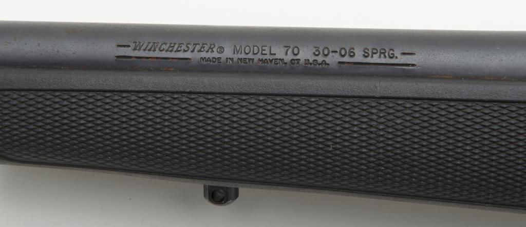 Winchester Model 70 bolt action rifle, .30-06 Springfield cal., 24” barrel, mat black finish, checkered composite stock, scope mounts on barrel, #G2330674 in overall fine condition showing the majority of its original finish, fine bore, action, interior and stock. (Modern/PPT). Est.: $250-$500.
