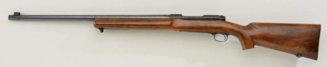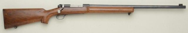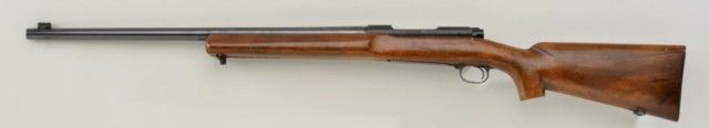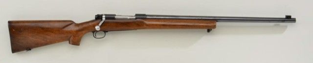 Winchester Model 70 bolt-action target rifle, .270 WCF cal., 24” heavy round barrel, blue finish, jeweled bolt, target stock with checkered steel butt plate, #221505. This gun is in overall fine to excellent conditionshowing the majority of its finish, fine bore, action, markings and heavy target wood stock. Est.: $1,400-$2,800.