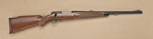 Winchester Model 70 post-64 Supergrade .458 Win Mag caliber, bored out to .460 Guns & Ammo S.M. caliber. The rifle is in fine to excellent condition showing some minor spotting around the sight, some slight loss of finish in that area from storage, otherwise near excellent overall with fine stock, good action, minty bore. These extended magnum cartridges were a hobby of Mr. Petersen’s when publisher of Guns & Ammo magazine and are probably mentioned in an article in the 1960’s or 70’s. Serial #G966486. From the Robert Petersen Collection. Est: $1,000 - $2,000