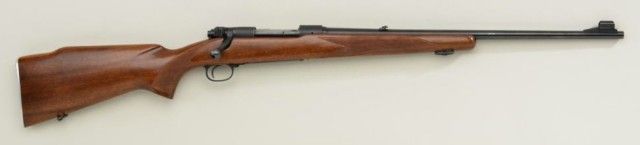Winchester Model 70 pre '64 Featherweight in 270 cal. serial #345025. The rifle shows 95% plus original blue some slight losses at the edges and muzzle. The stocks are very good plus to near fine with sharp checkering, acouple of scratches and minor imperfections. Factory style sling swivels and original front and rear sight. Good action, fine bore. Robert E. Petersen collection. Est.; $800-$1,600.