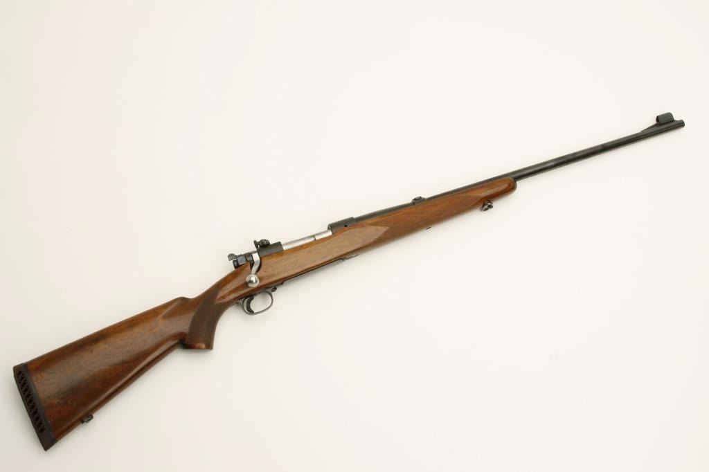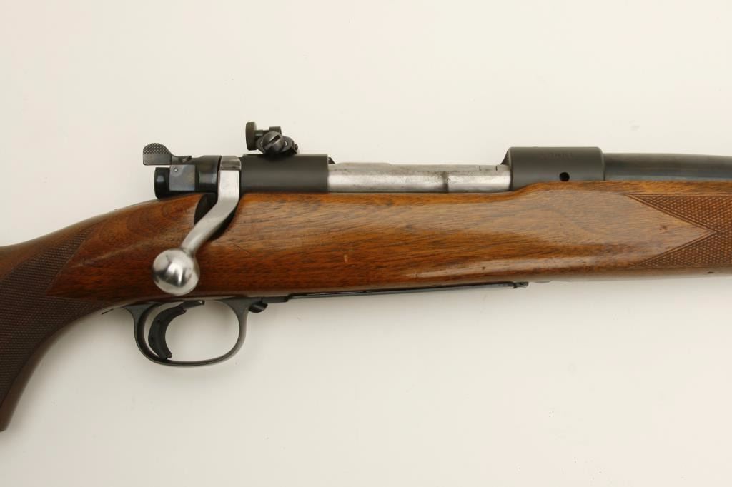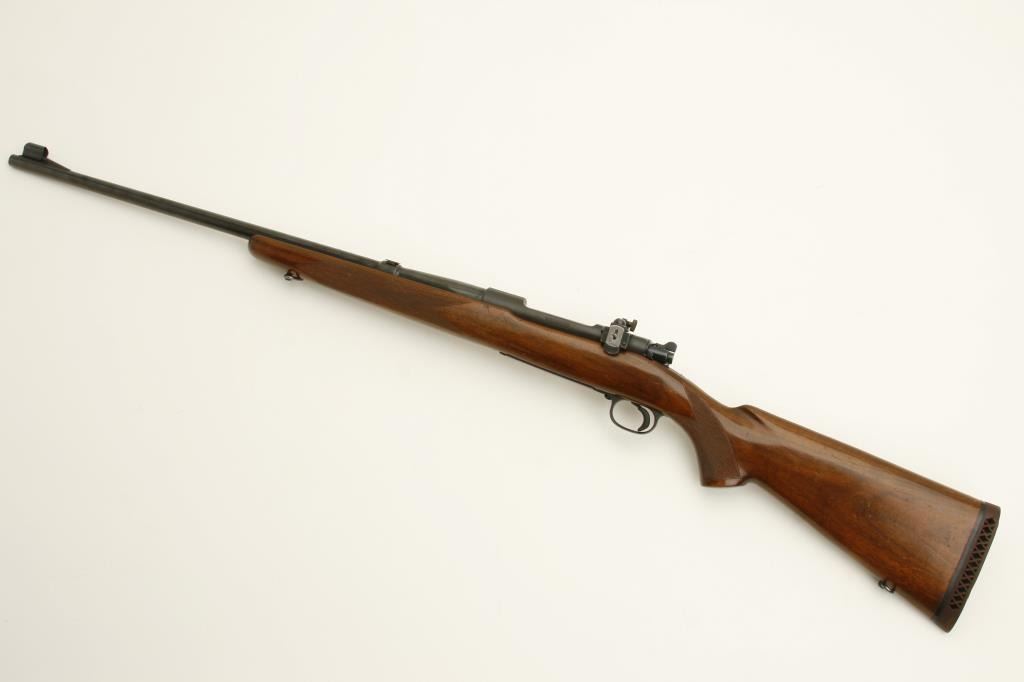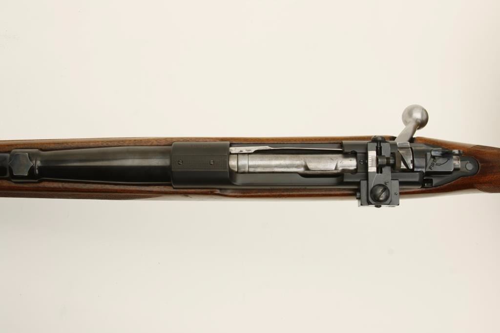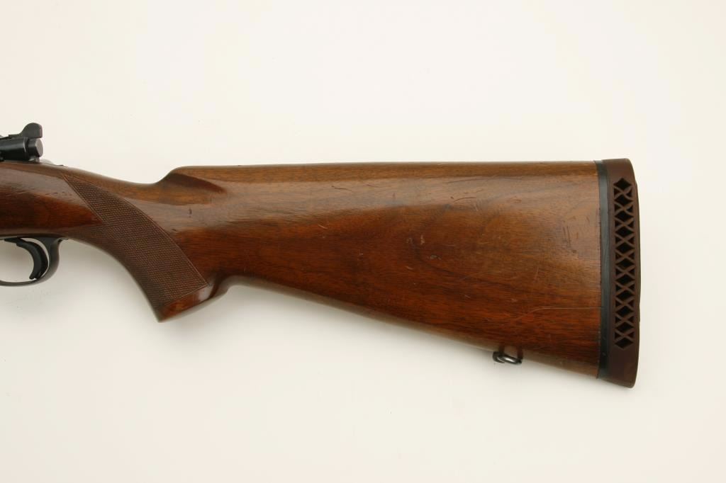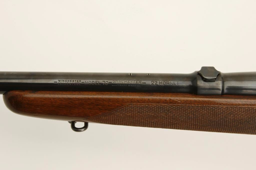Winchester Model 70 (pre-64) bolt action rifle, .220 Hornet caliber, 24” barrel, blued finish, checkered wood stock with Livermore and Meyers hard rubber butt pad, S/N 48651, in overall very good to fine condition,receiver and barrel tapped for scope mount, Lyman adjustable receiver mounted sight with hooded front sight, fine bore, crisp action, sharp markings and overall very good wood showing handling and scattered old mars andscratches from carry and storage. (C&R). Est.: $1,250-$2,500.