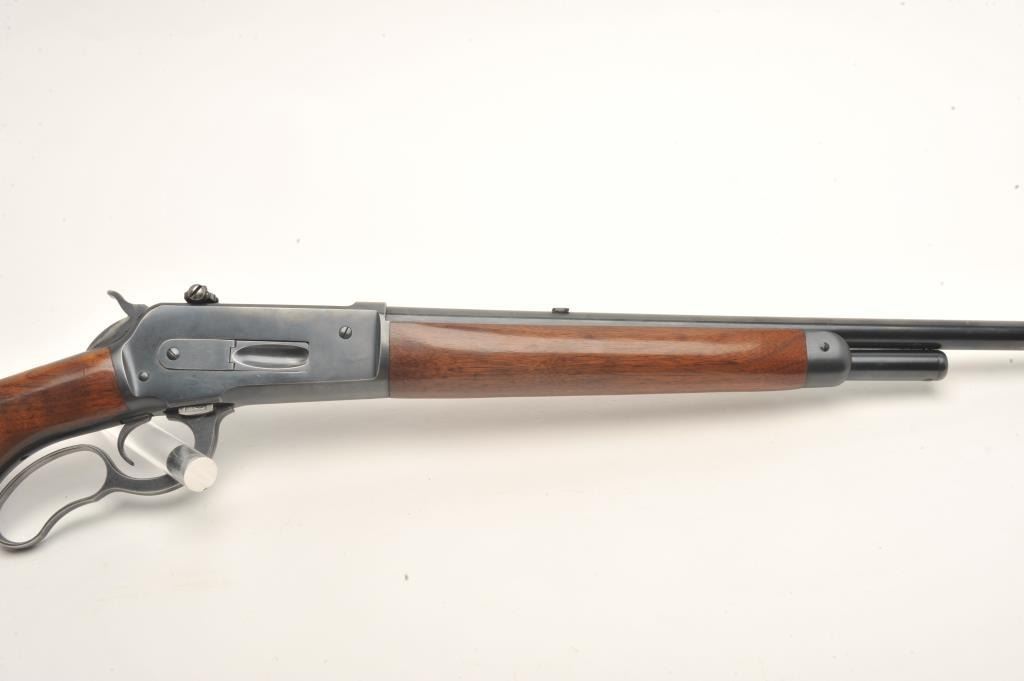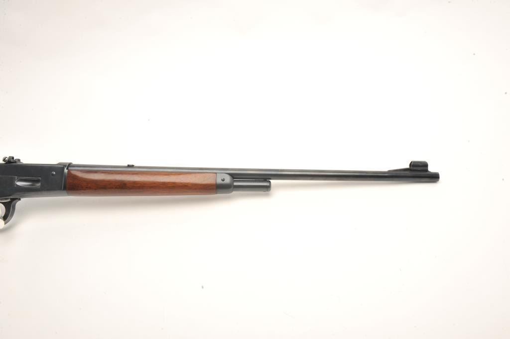 Winchester Model 71 lever action rifle, .348 caliber, 24” round barrel, Lyman receiver mounted rear sight and hooded front sight, blued finish, wood stocks, S/N 28343, in overall fine condition with a fine bore,crisp action, sharp markings and fine stocks. (C&R). Est.: $1,500-$3,000.