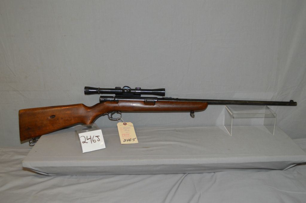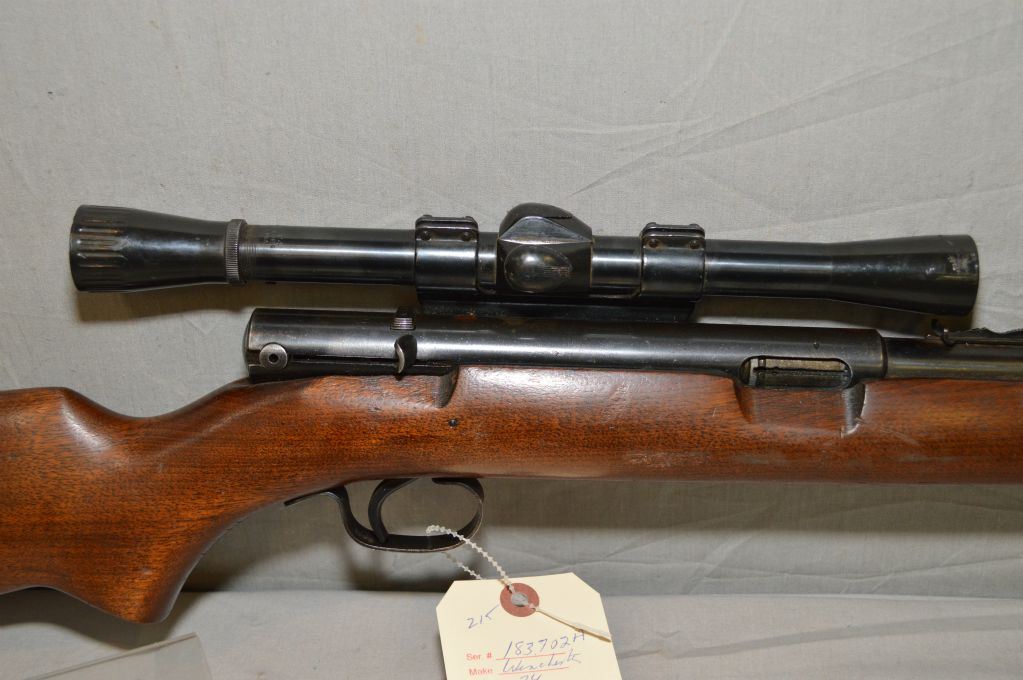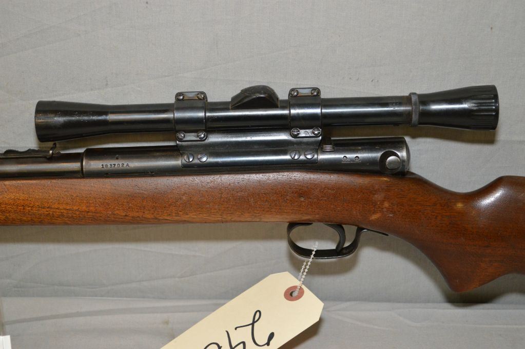 Winchester Model 74 . 22 LR cal Tube Fed Semi Auto Rifle w/ 22" bbl [ blued finish starting to fade, barrel sights, also fitted w/ Weaver El Paso C4 scope side mounted, walnut stock w/sling swivels, some marks ] Ser # 183702A