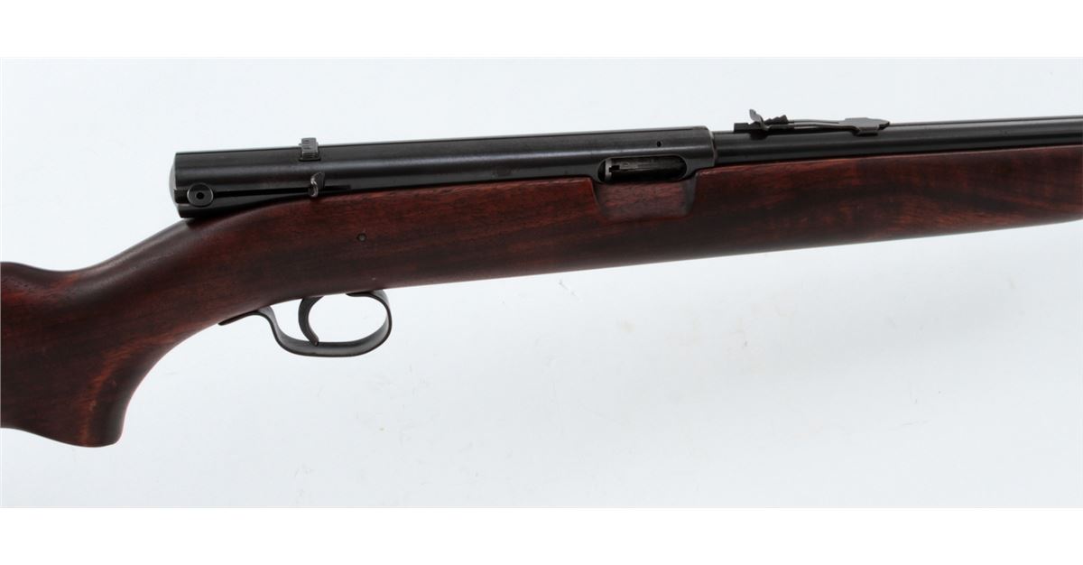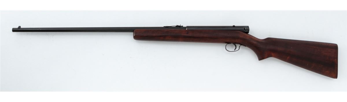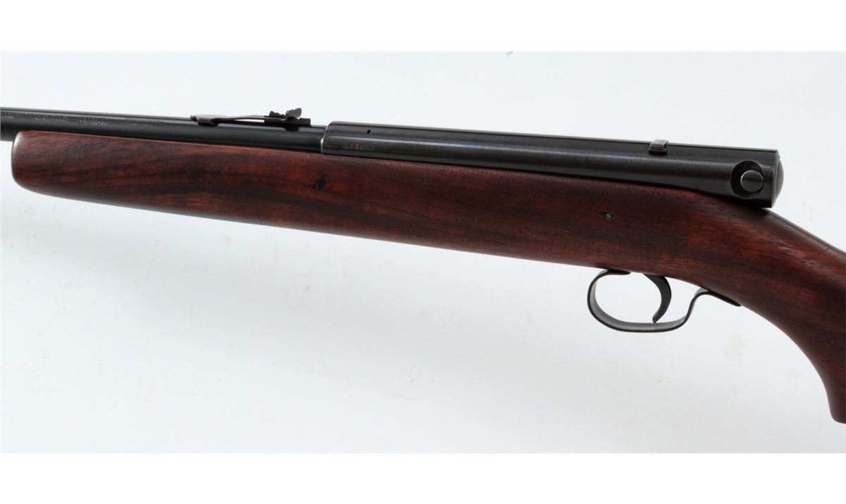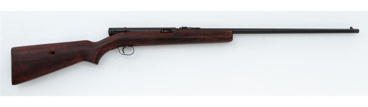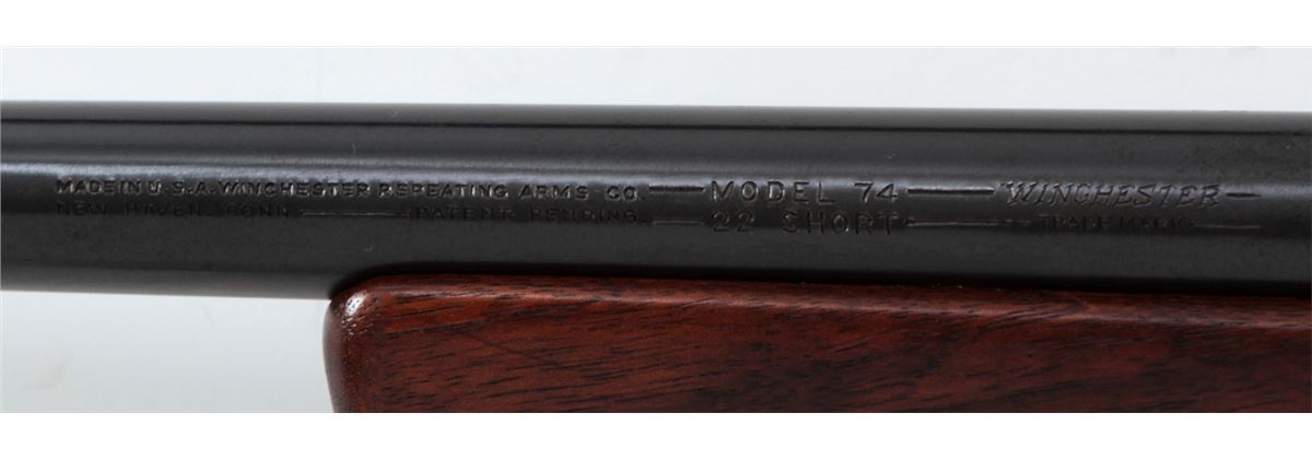 Winchester Model 74 Semi-Automatic Rifle, #127360, .22 Short cal., 24'' barrel, blue finish, walnut stock. Condition is excellent retaining approx. 95% lightly thinning and toning blue. Stock with only light marks from handling and possibly an extra coat of linseed oil. Action is good, bore is bright. Est.: $250-$400. (C&R)